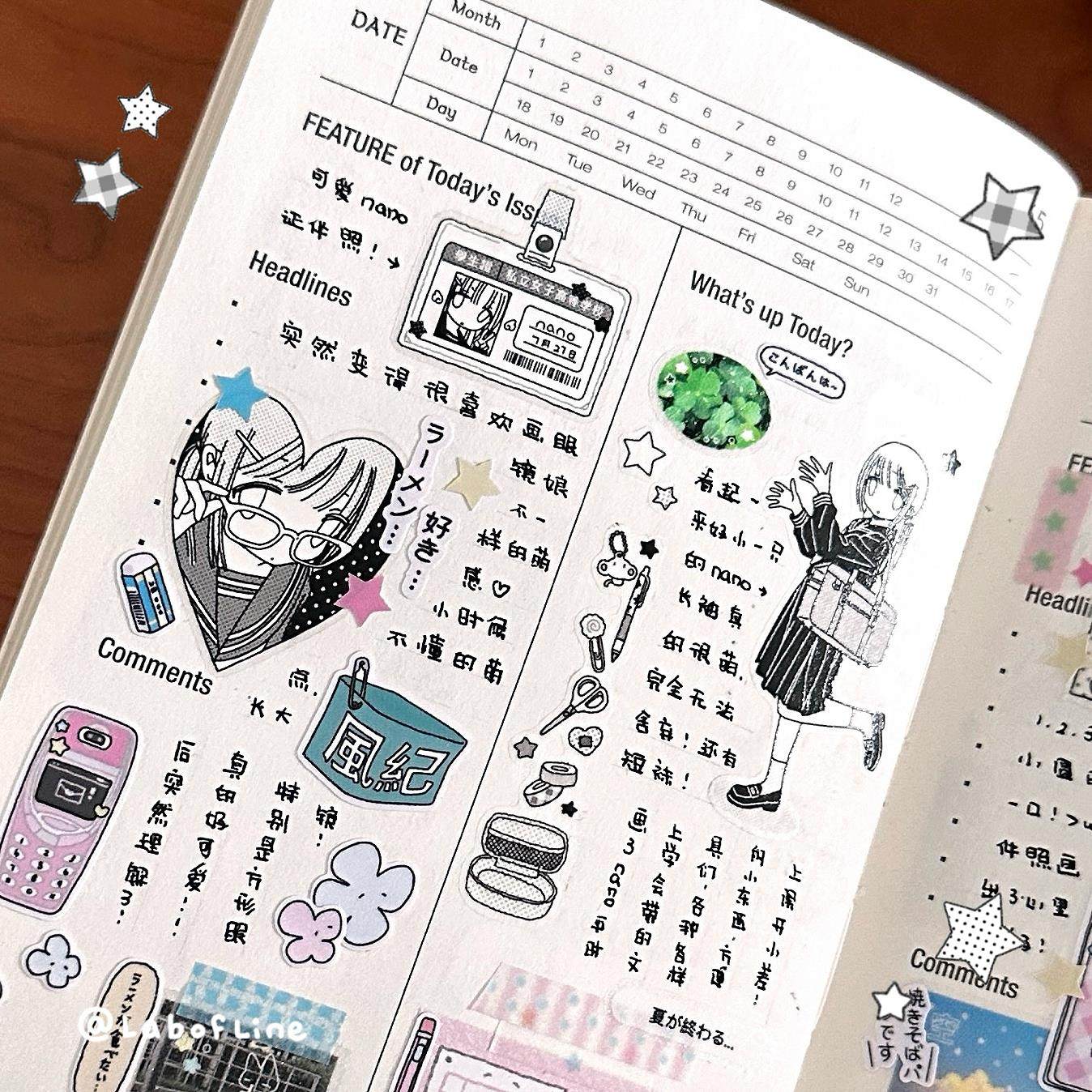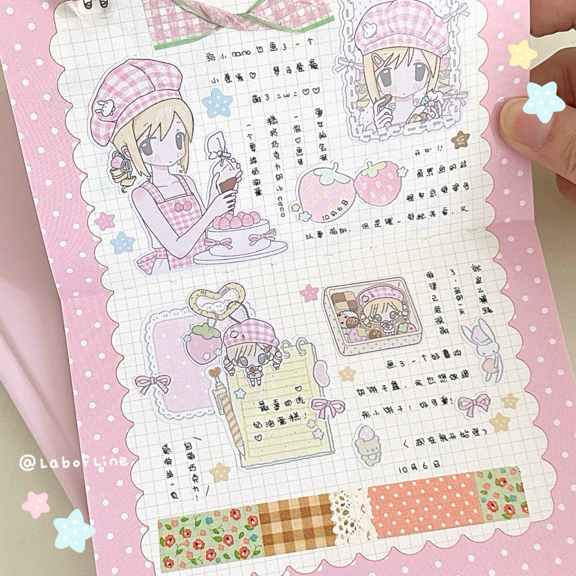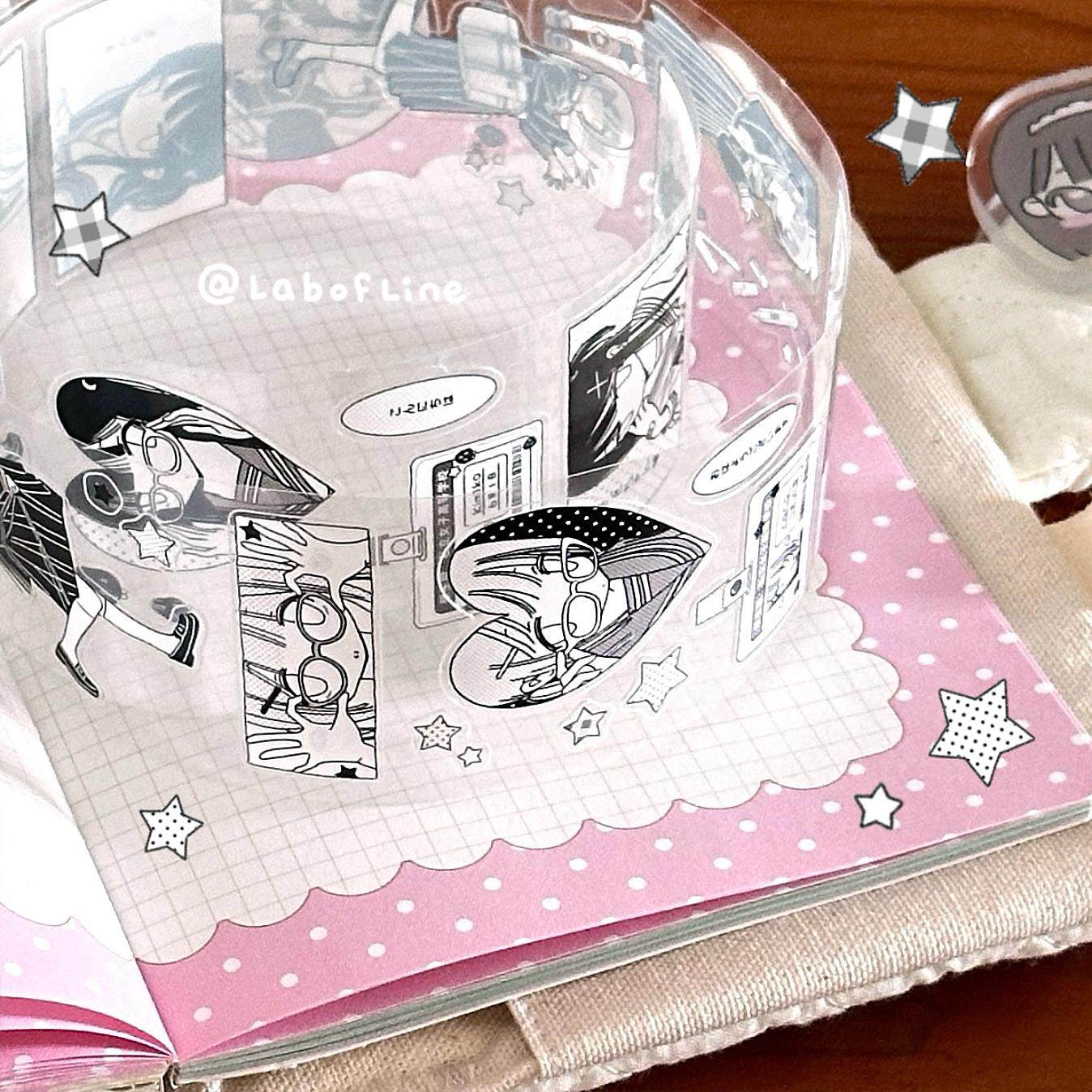 线条研究室 电波放送中/喫茶屋/草莓奶油 切模胶带手帐人物素材