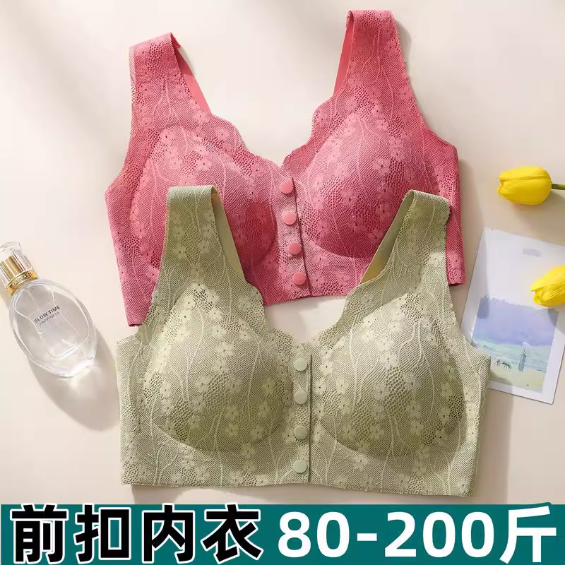 内衣文胸胸罩女士妈妈中年妇女中老年人无痕无钢圈前扣大码背心式