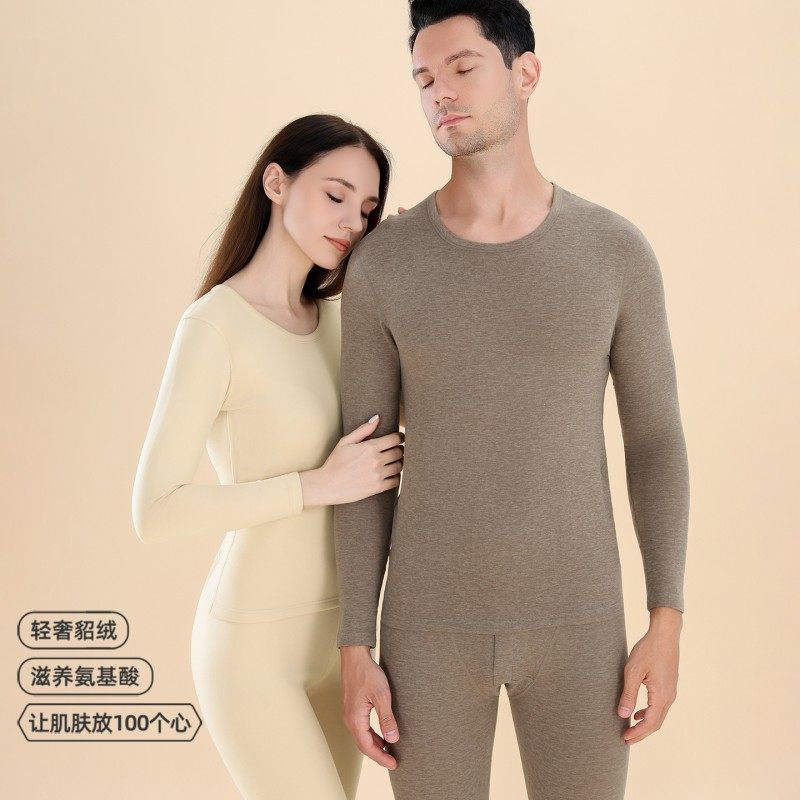 莹柔7057秋冬中厚棉秋衣秋裤圆领修身保暖内衣棉毛衫基础打底套装