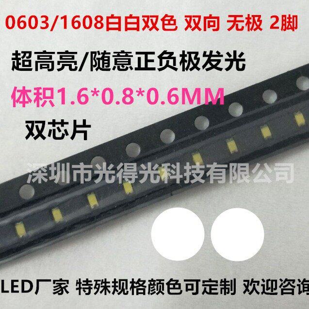 0603无极白灯 1608无极白光 高亮白色 led贴片灯珠 随意正负极