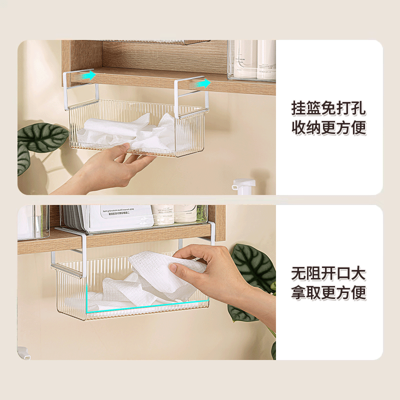 卫生间镜柜收纳盒洗漱台壁挂厨柜下挂免打孔挂篮浴室化妆品置物架
