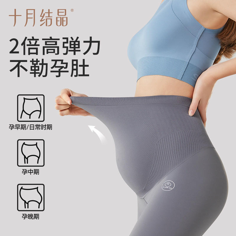 十月结晶孕妇打底裤子小个子瑜伽裸感不勒肚子鲨鱼裤秋冬季款外穿