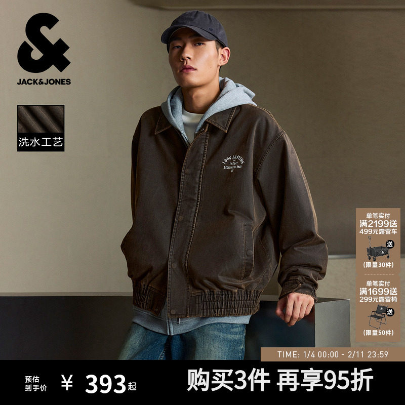 杰克琼斯外套男款秋季新款仿蜡染棒球服夹克复古做旧外套上衣男装