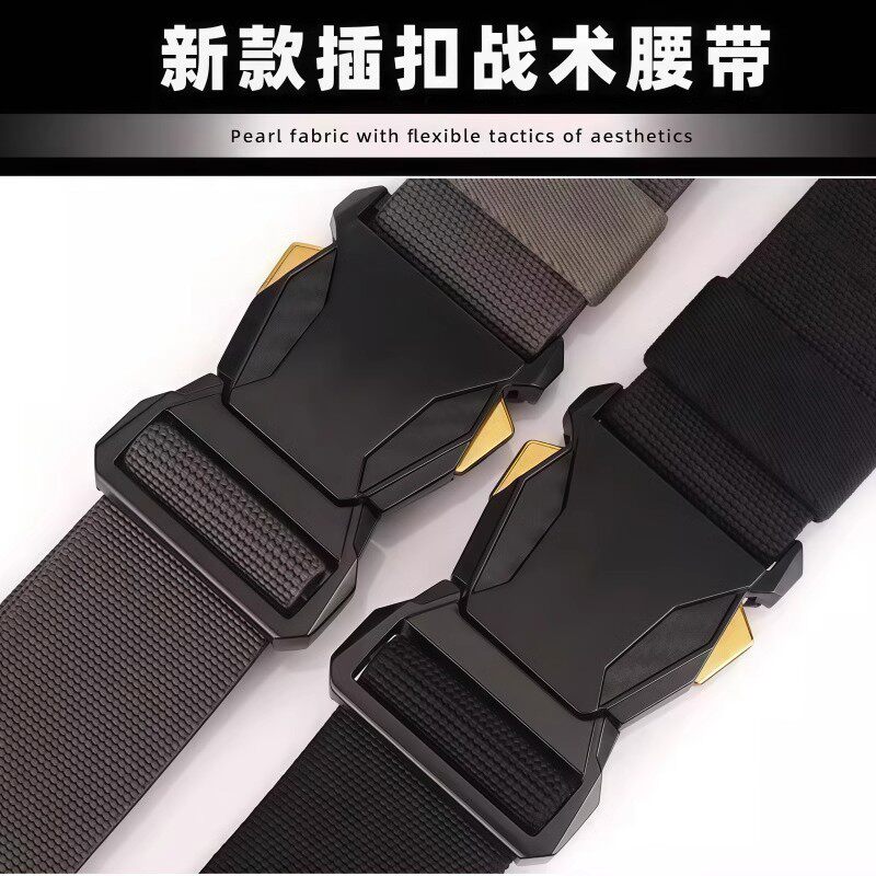 男士战术腰带松紧插扣新款尼龙帆布户外运动休闲自动百搭皮带