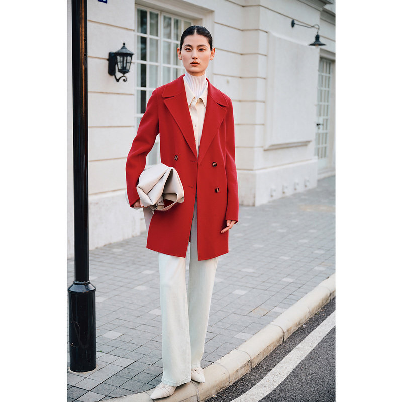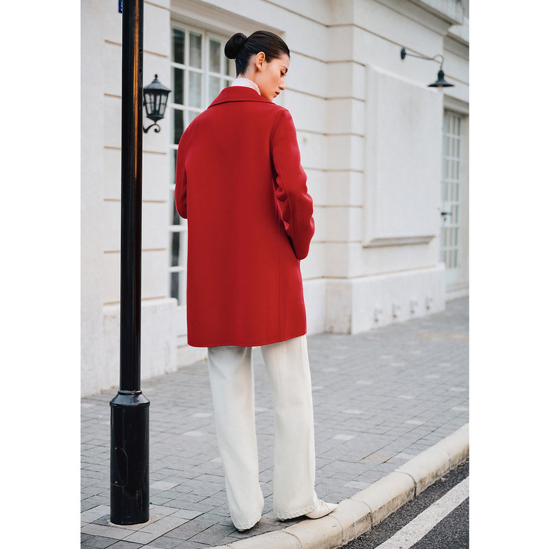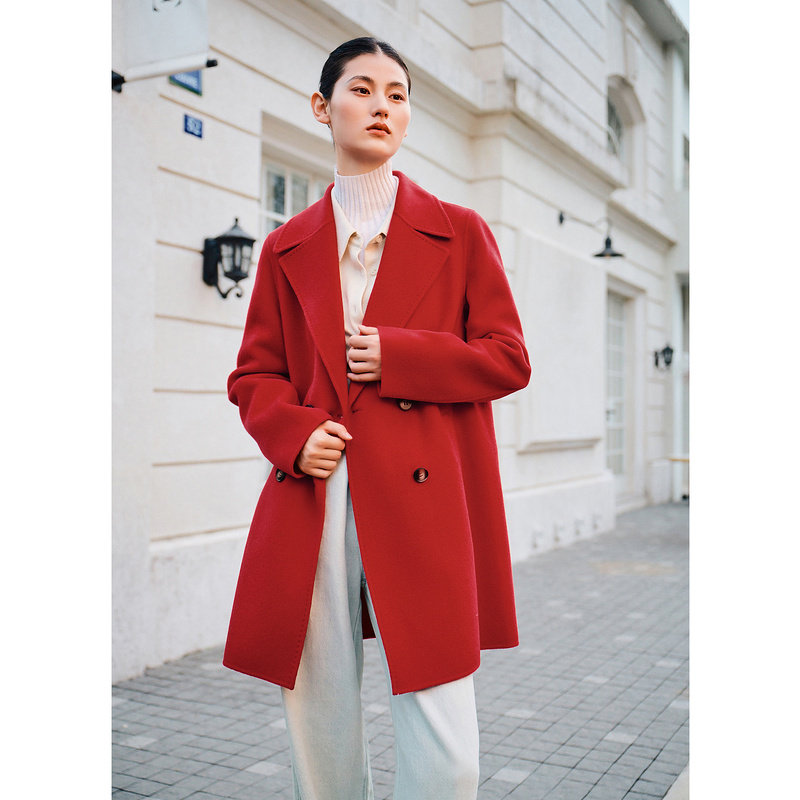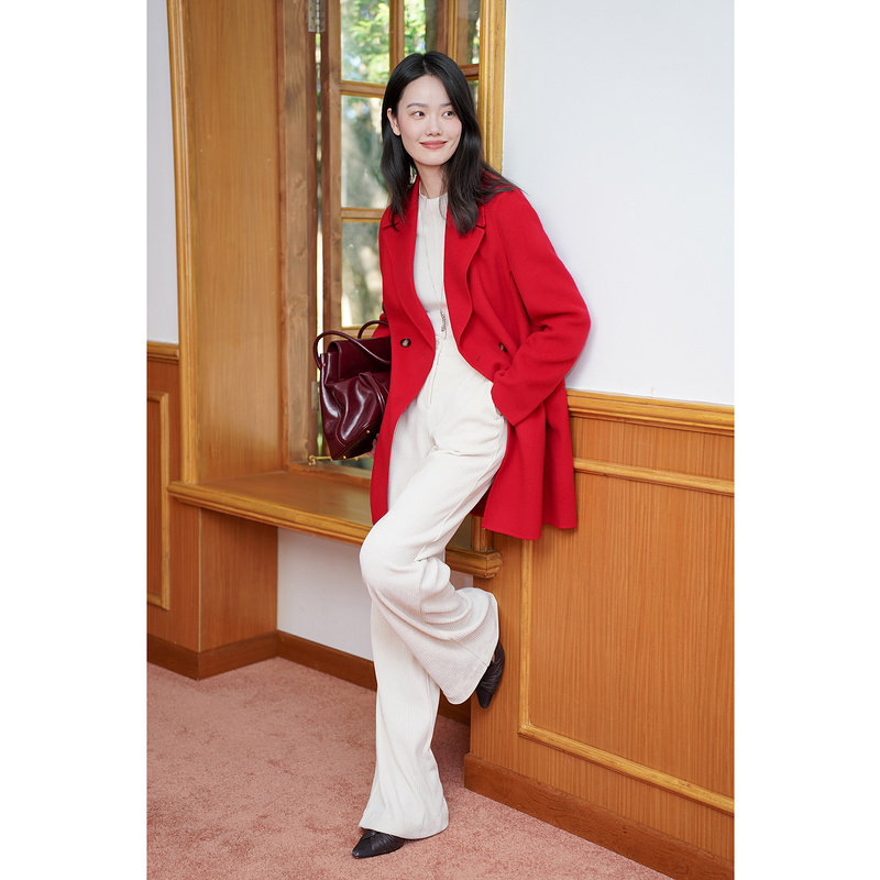 【中国红】YINER音儿专选2025春新款美丽诺羊毛羊绒毛呢大衣外套