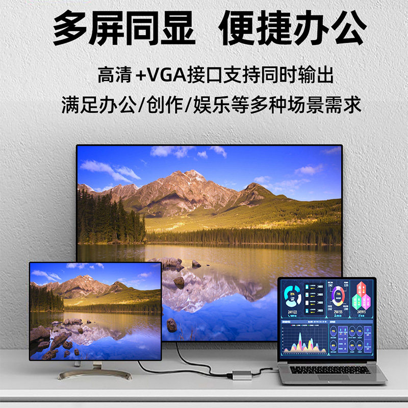 腾飞typec转hdmi拓展坞扩vga适用华为笔记本苹果平板ipad联想macbook电脑手机连接电视投影仪显示器投屏转换