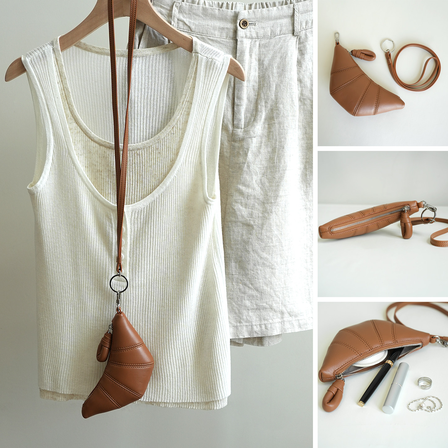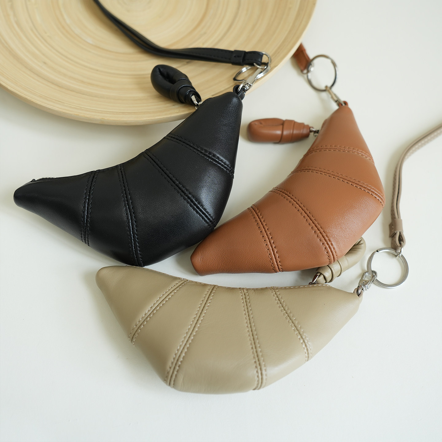 网红可颂牛角包2025小众迷你复古钥匙包百搭口红耳机包挂脖零钱包
