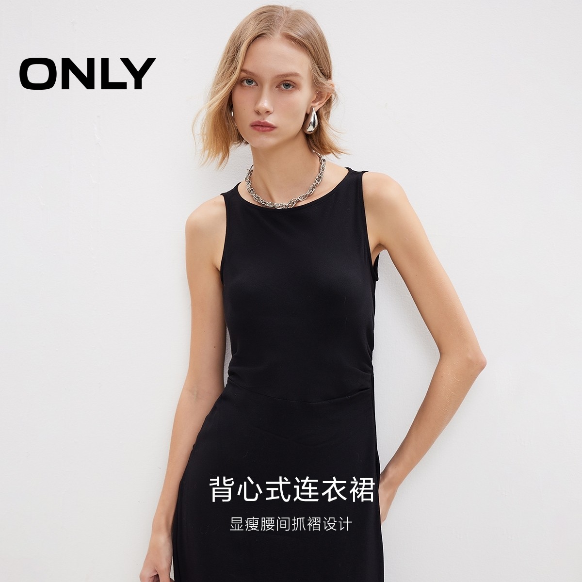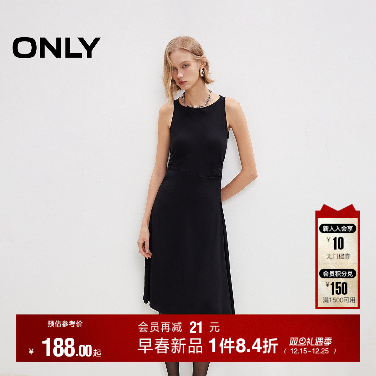 ONLY夏季气质简约优雅圆领显瘦中长裙无袖连衣裙女|124407001