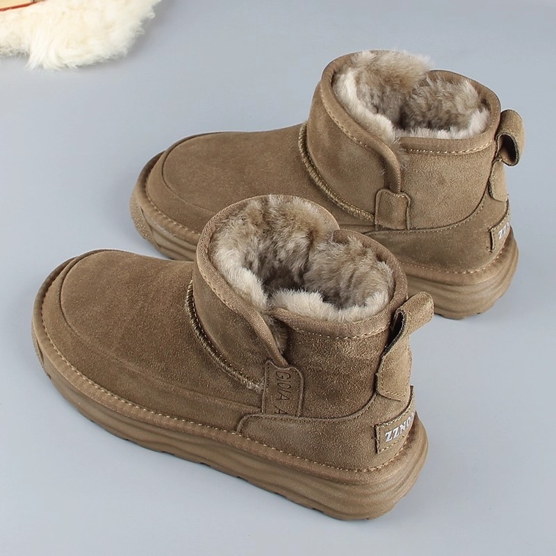 桑坡真羊毛雪地靴女款2025新款冬季真皮加绒棉靴厚底增高短筒靴子