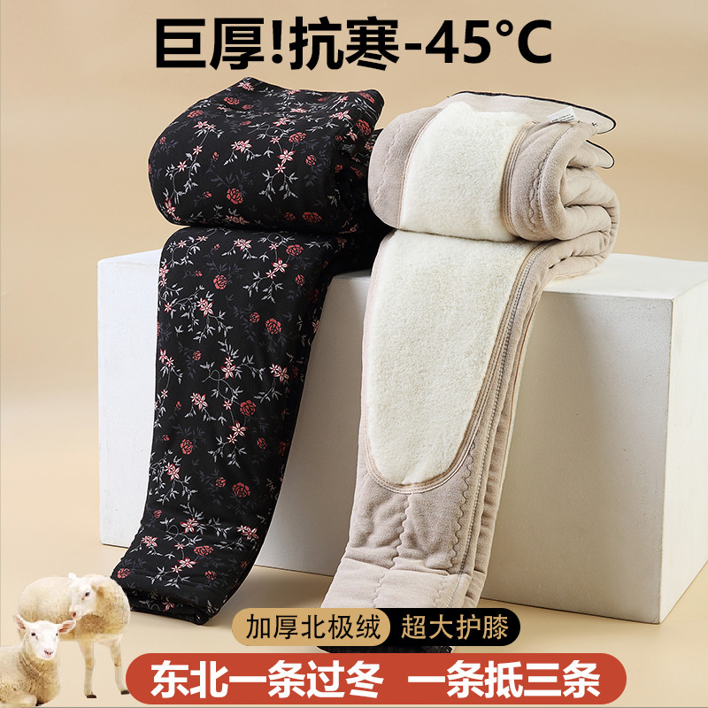 妈妈冬季棉裤外穿加绒护膝护腰中老年人女裤高腰奶奶保暖裤子丝棉