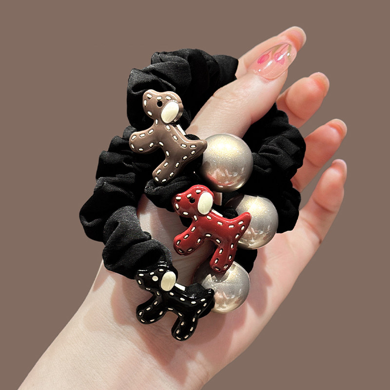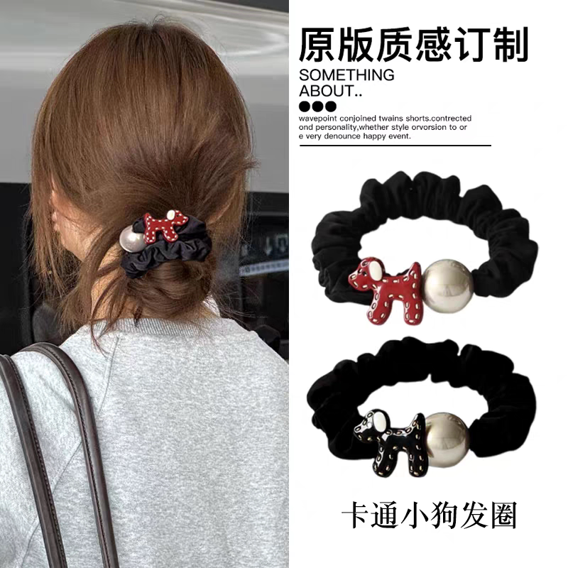 高级感小狗发绳女缎面小肠发圈不伤发扎头皮筋2025新款丸子头头绳