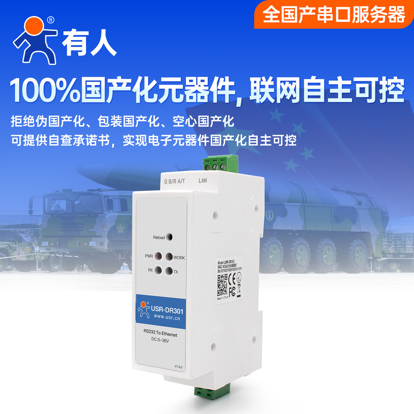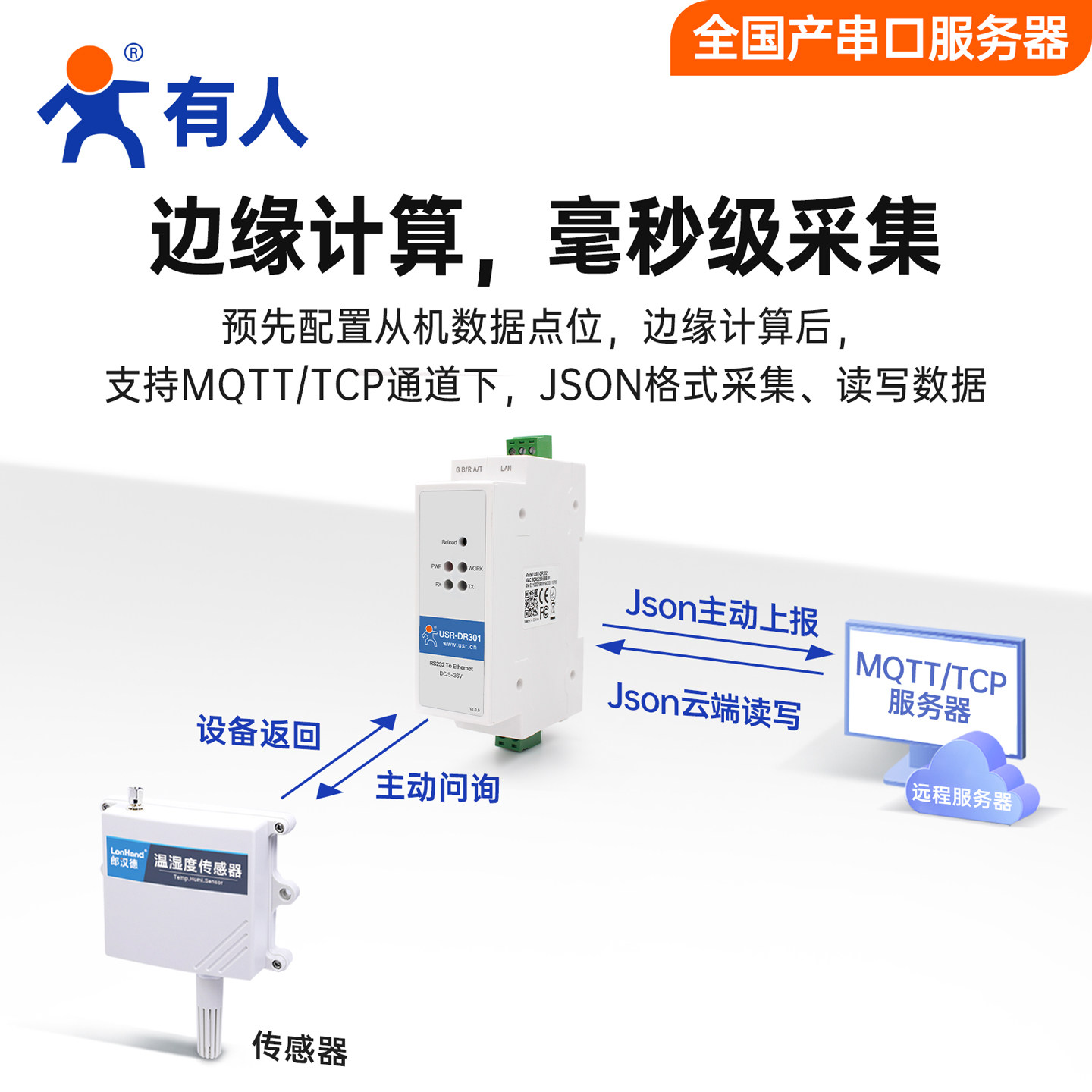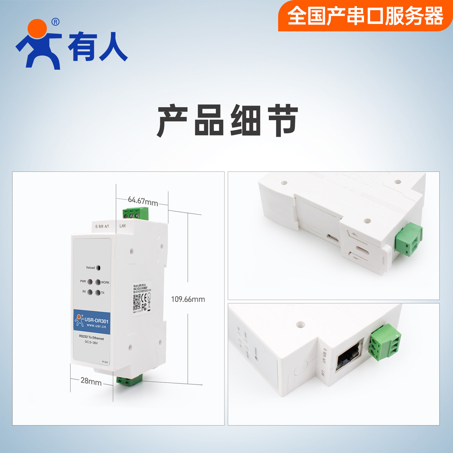 【有人物联网】RS232串口服务器导轨式串口转以太网网口模块modbus rtu转tcp网关全国产工业级网络设备DR301