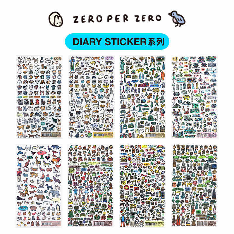 韩国ZERO PER ZERO可爱咕卡手帐贴纸装饰风景人物镭射贴画素材ins