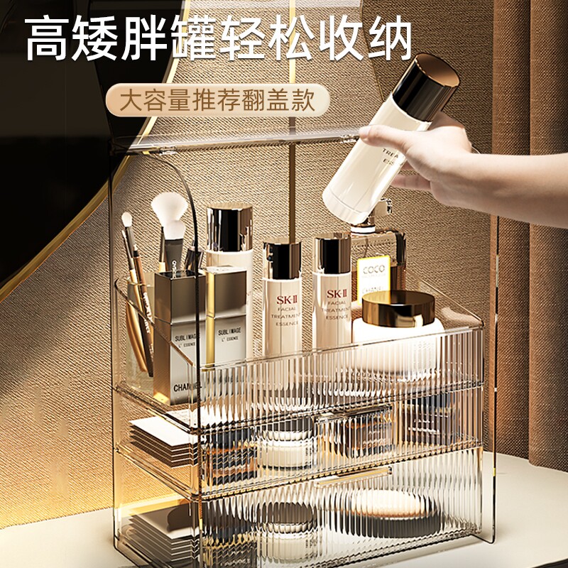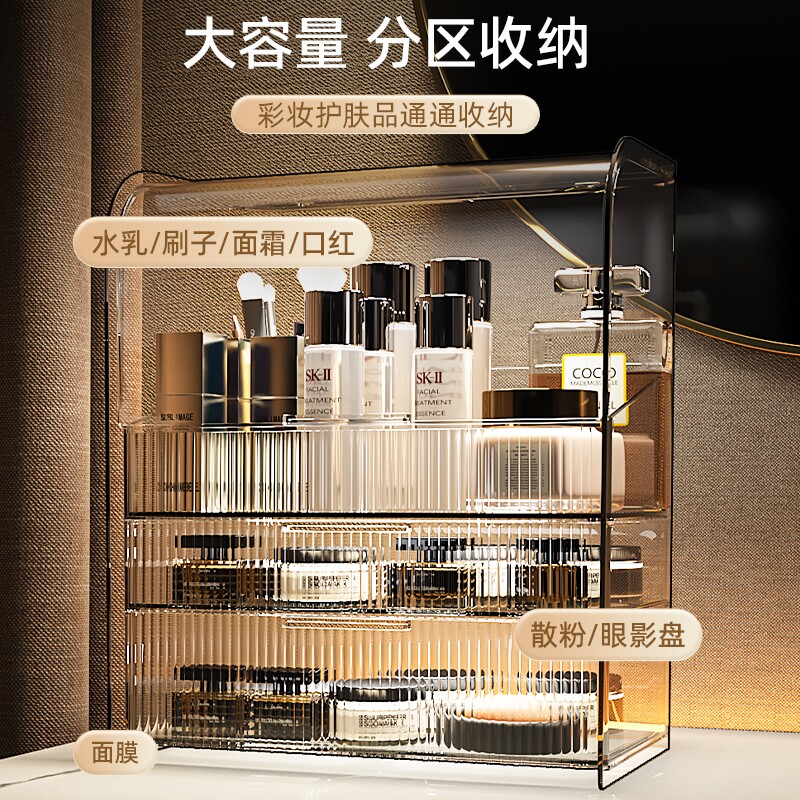 化妆品置物架收纳盒桌面防尘透明高级感大容量多层护肤品亚克力箱
