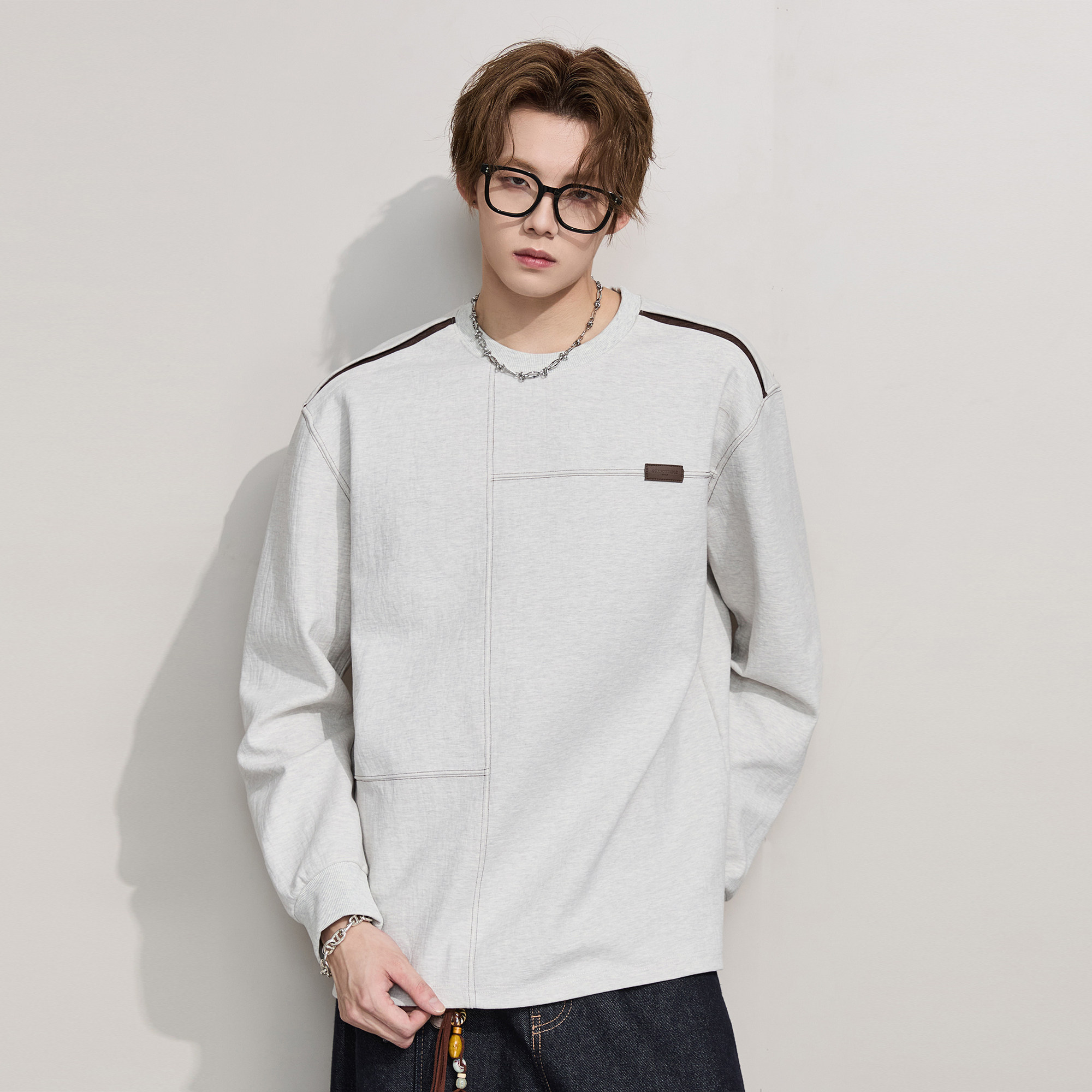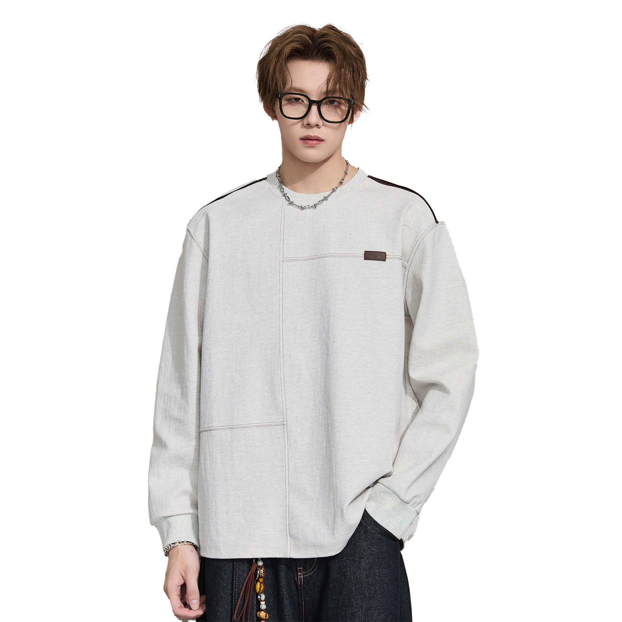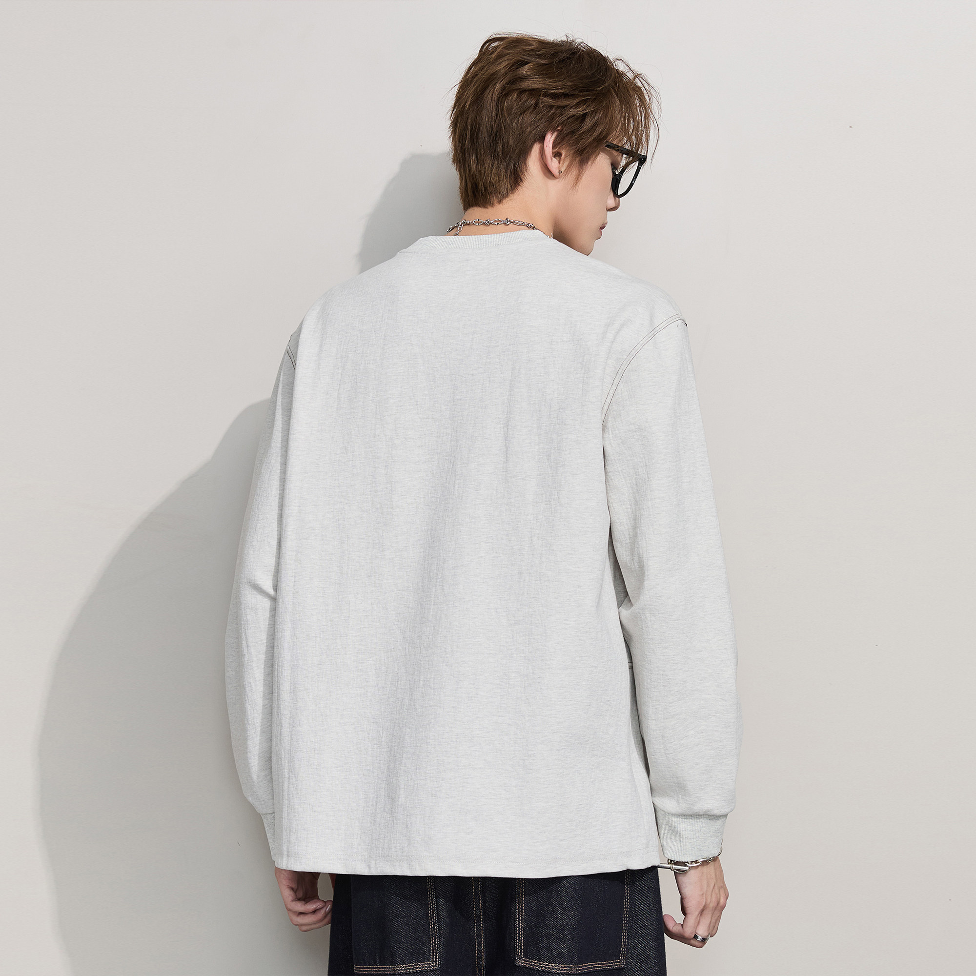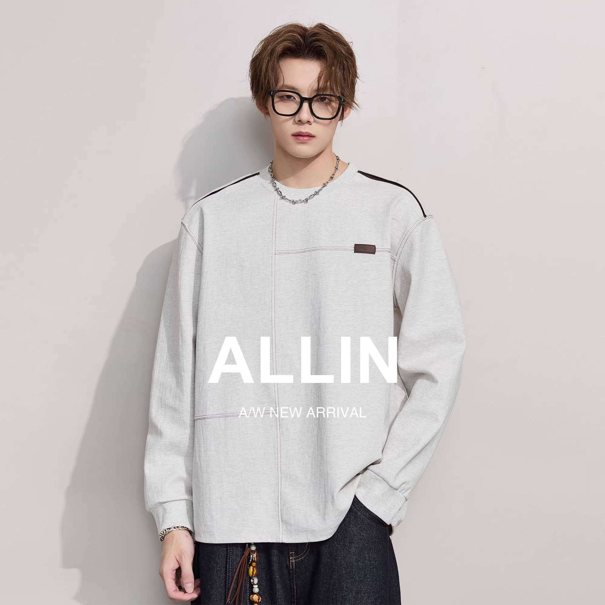 ALLIN 莱赛尔长袖T恤男秋冬重磅潮牌宽松打底衫圆领套头情侣上衣