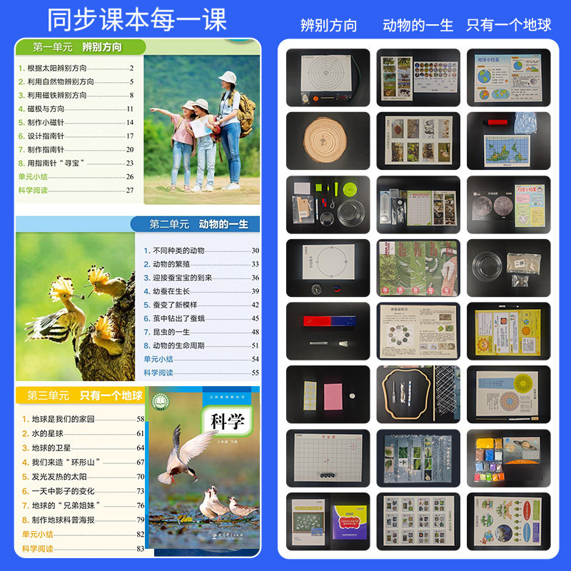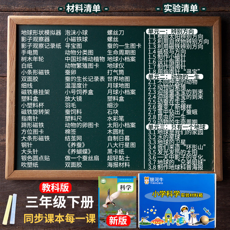 三年级上册下册科学实验套装小学3年级教科版三下箱盒包器材材料