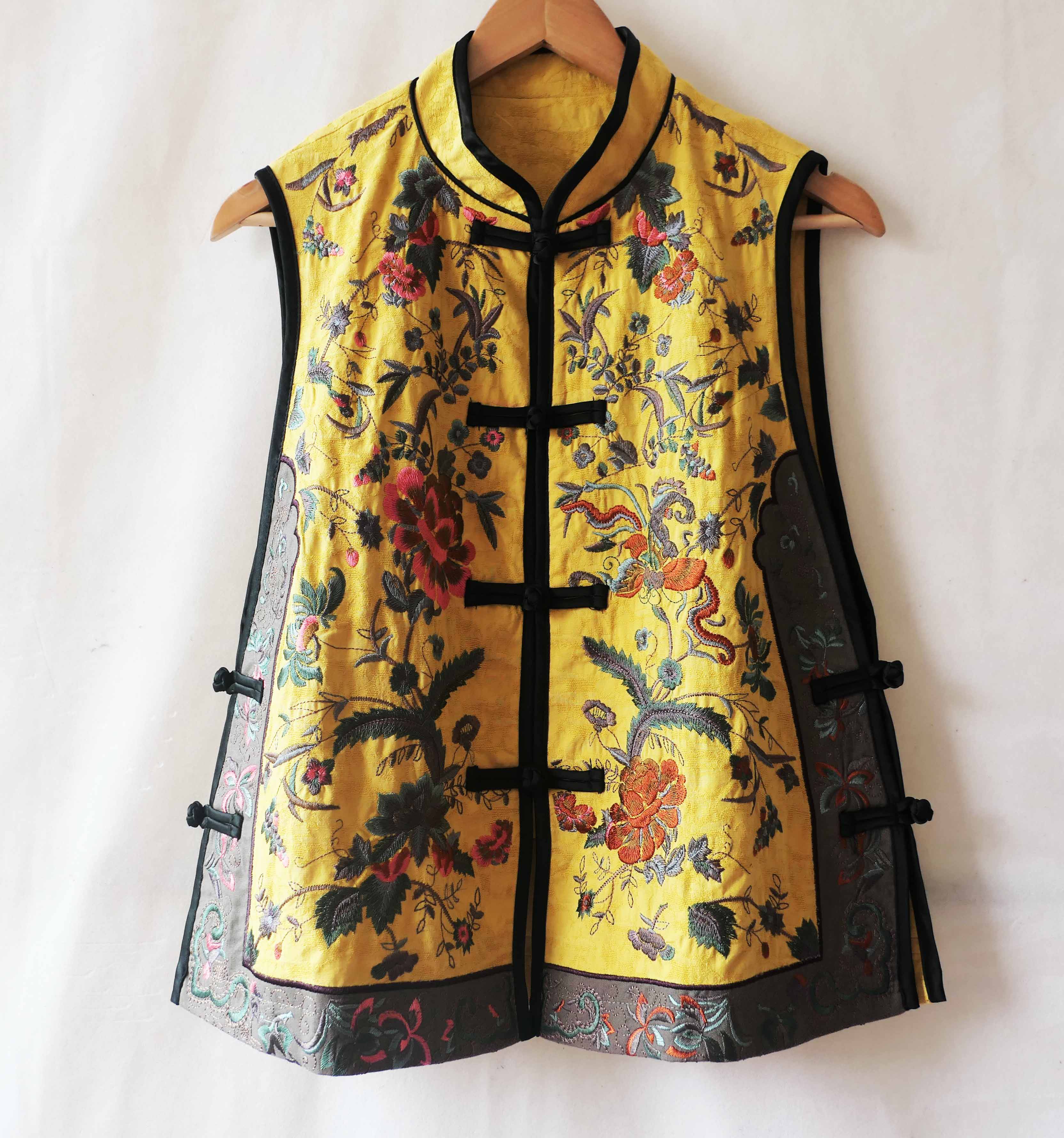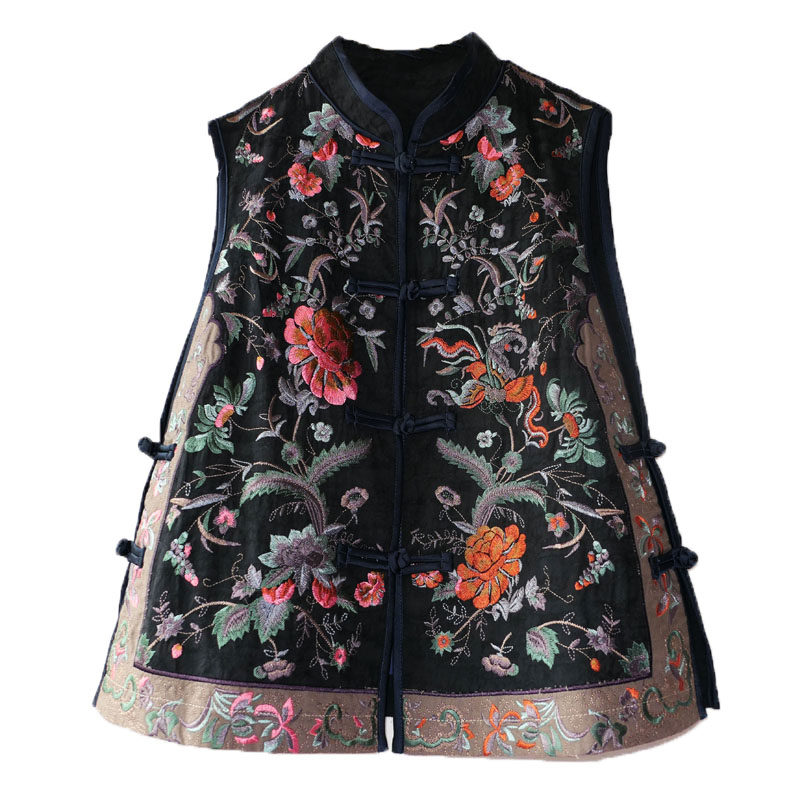 重工刺绣马甲背心棉麻盘扣侧面全开系扣民族风新款女装春秋冬圆领