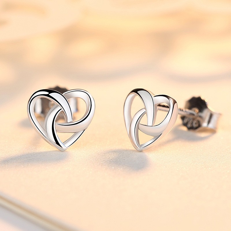 925银心形纯银耳钉女爱心桃心形可爱风不规则几何造型耳饰批发