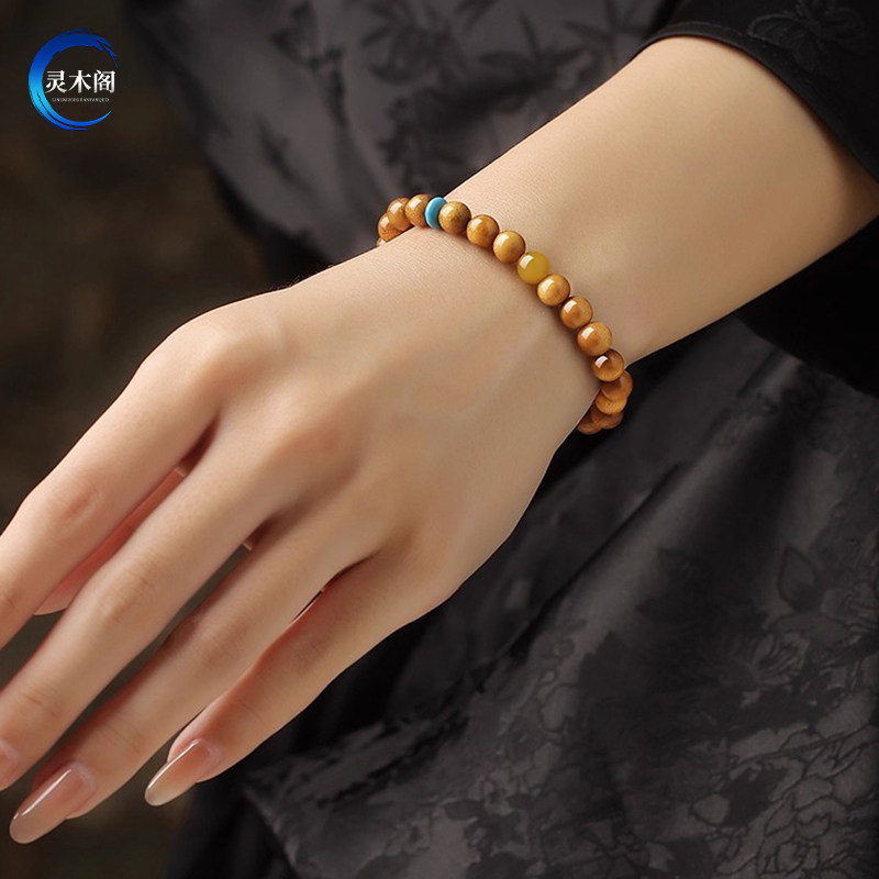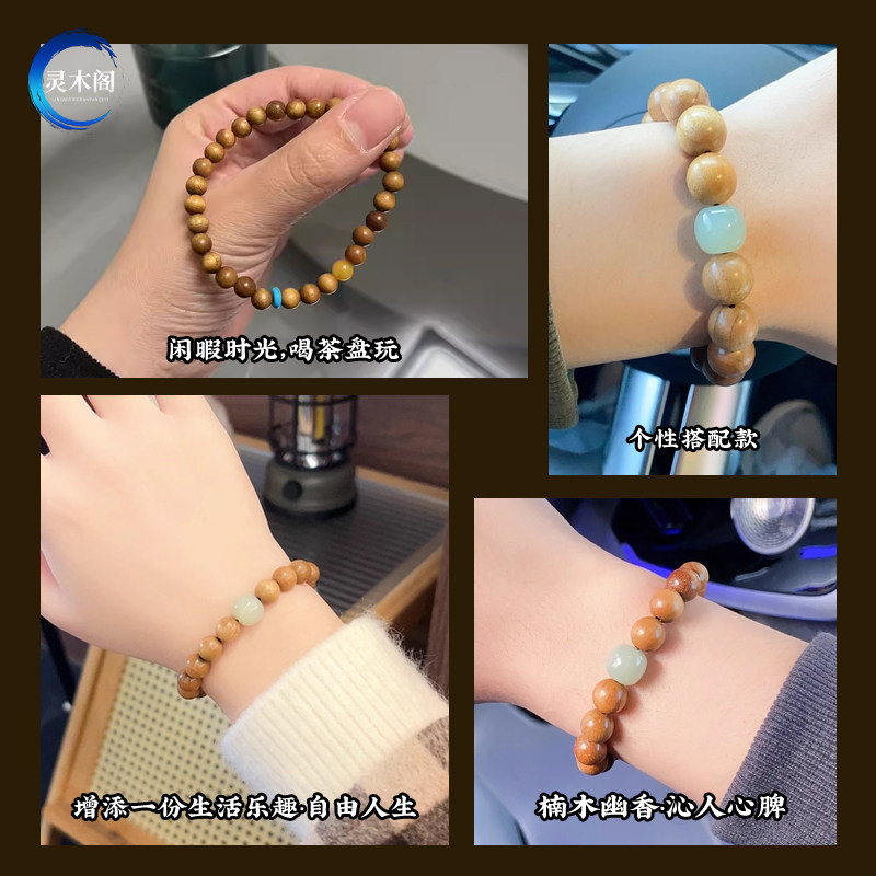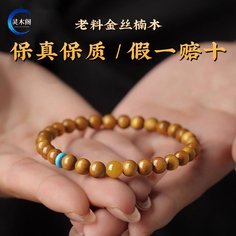 天然金丝楠木手串木质佛珠文玩男女士手链蜜蜡和田玉四川小叶桢楠