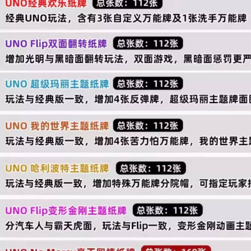 UNO纸牌正版桌游FLIP卡牌乌诺经典多人休闲聚会扑克牌塑封翻转