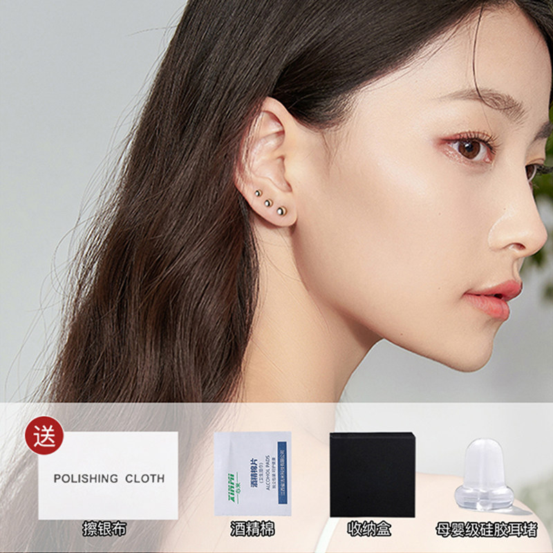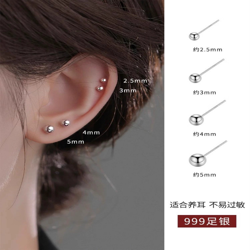 S999纯银耳钉女睡觉养耳洞免摘耳棒银饰耳环素圈耳骨钉耳洞耳饰