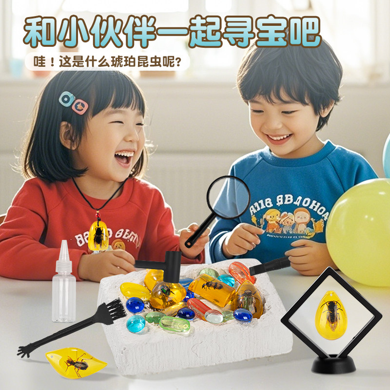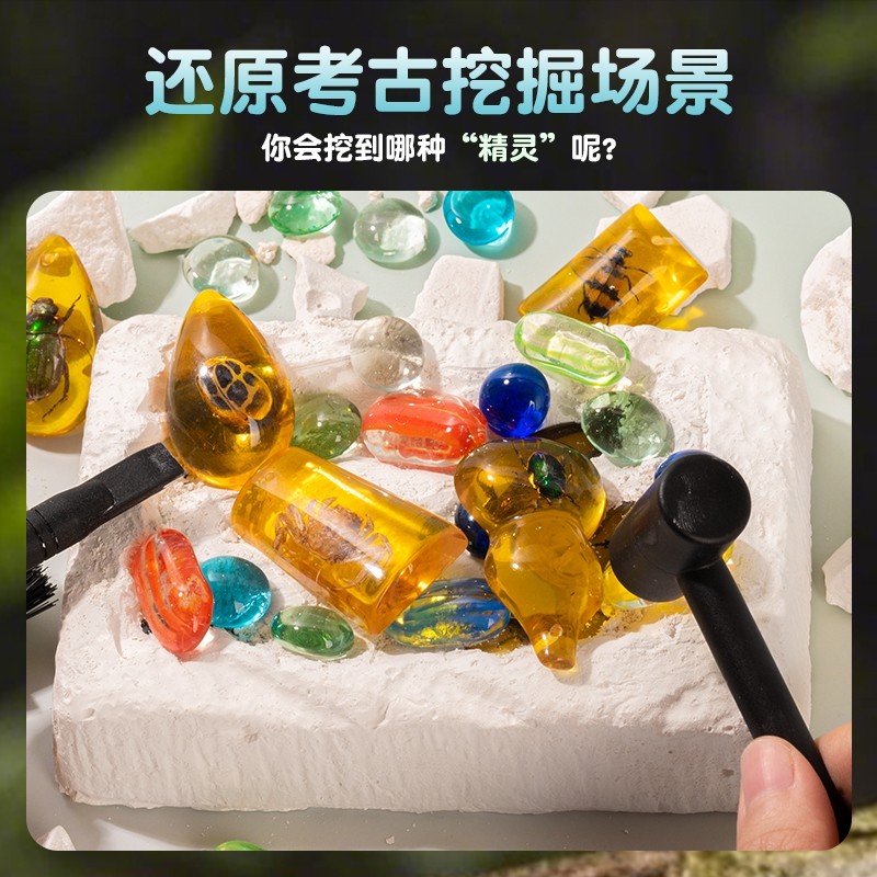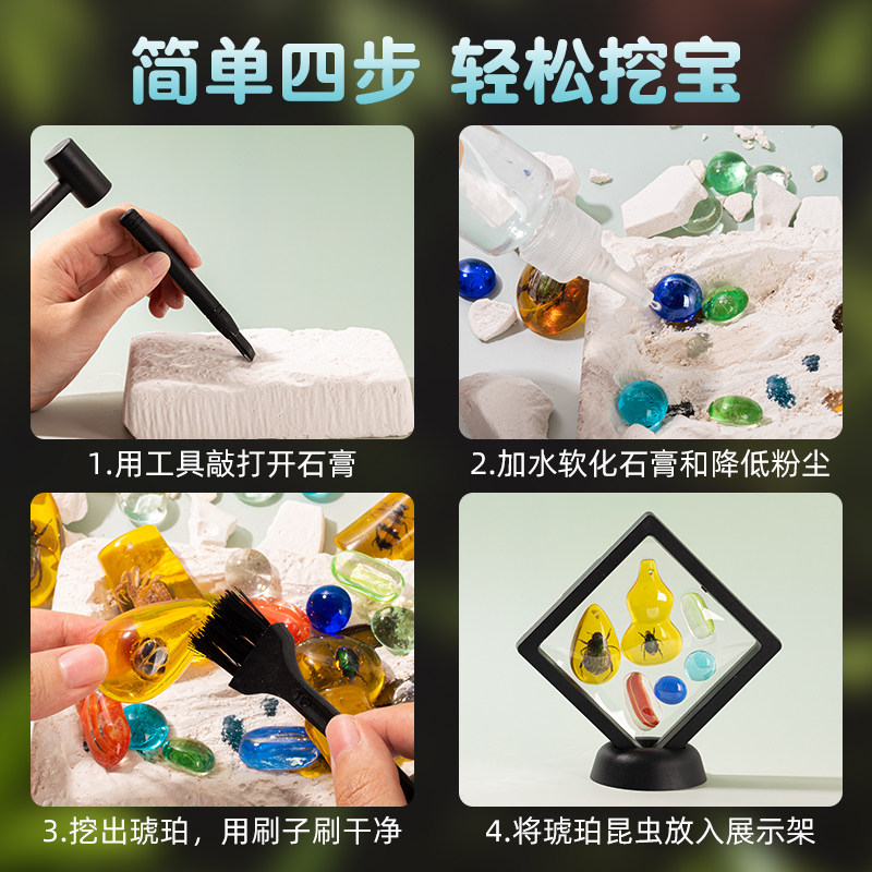 考古挖掘挖宝玩具琥珀昆虫标本挖矿石儿童diy男宝藏寻宝女孩套装