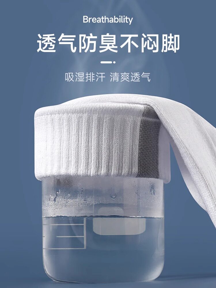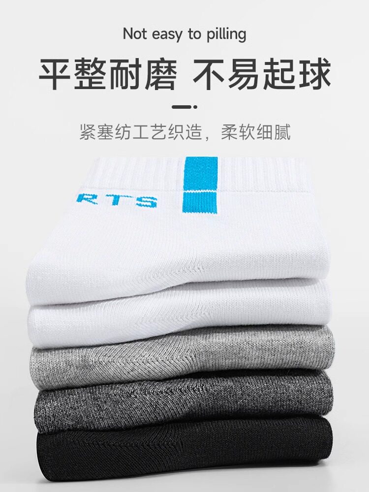运动袜子男款双针秋冬季吸汗防臭船袜透气百搭中筒袜黑白色青少年