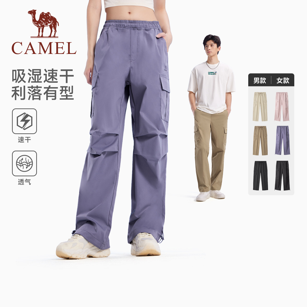骆驼运动工装裤女春秋季新款伞兵裤户外速干休闲长裤徒步登山裤男