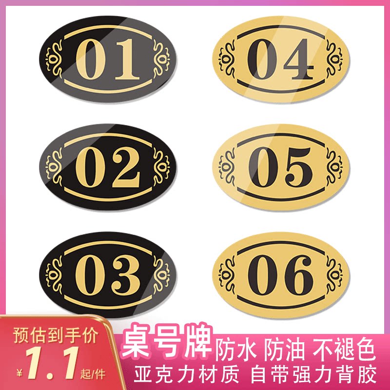 亚克力数字贴网吧餐厅储物柜号码牌办公桌号牌座位号编号牌贴设备号码牌门牌餐桌牌定制