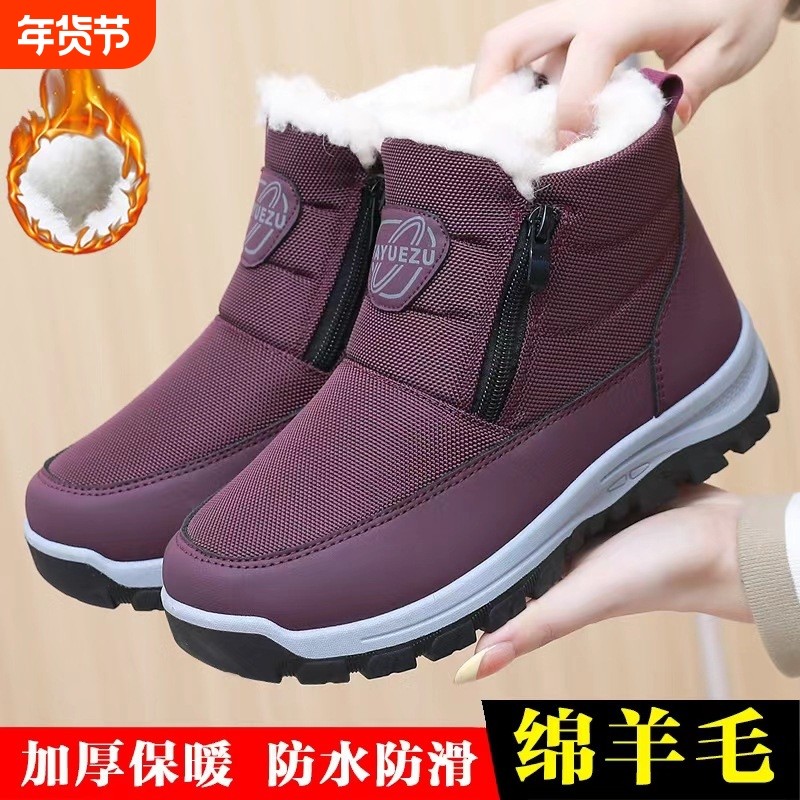 回力老人棉鞋女士冬季加绒加厚中老年保暖雪地靴妈妈鞋子防滑防水