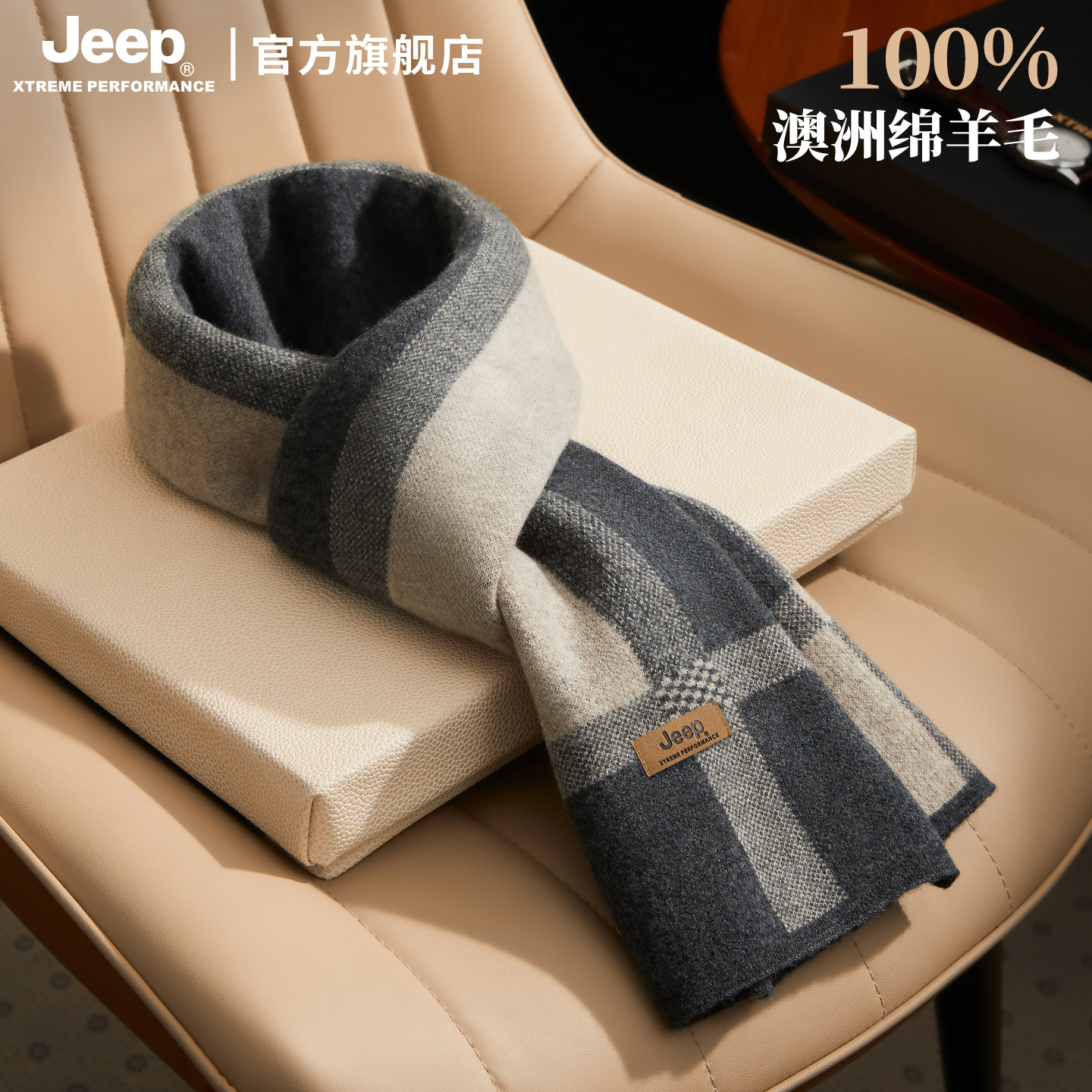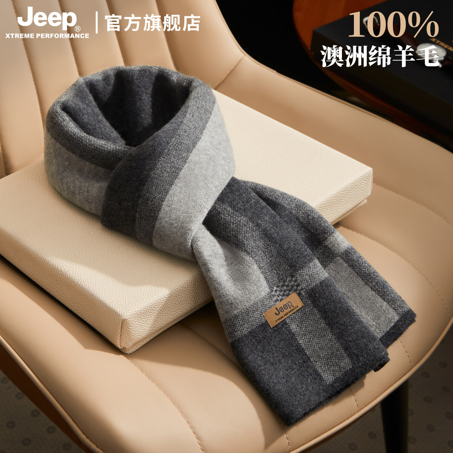 jeep吉普围巾100%绵羊毛男士生日礼物礼盒送男友冬季保暖骑行围脖