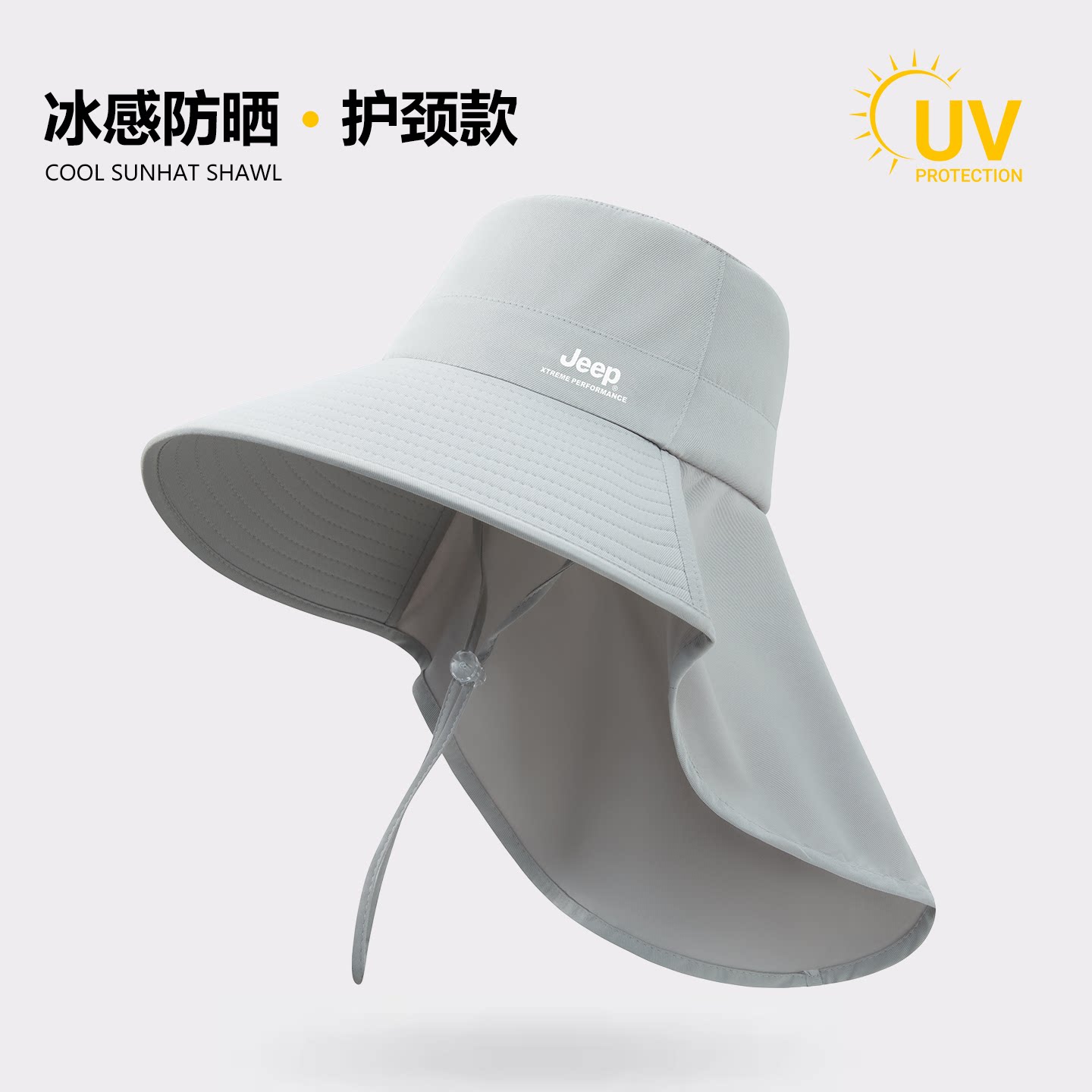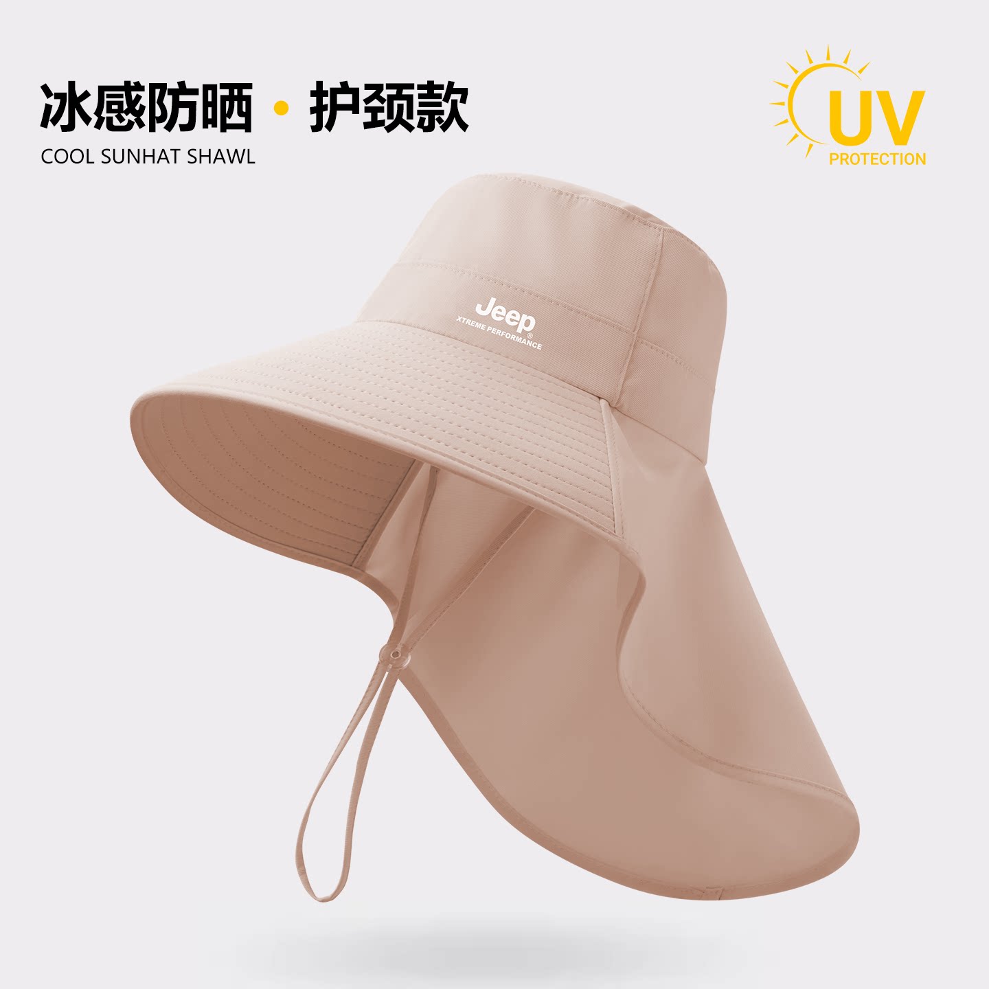 jeep吉普夏季女士防晒渔夫帽户外登山骑行钓鱼披肩大檐太阳帽子女
