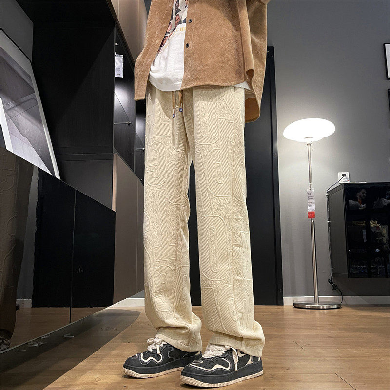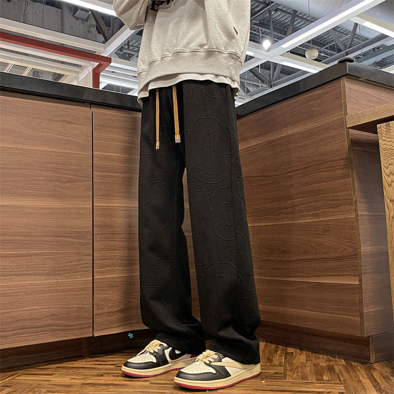 ProteusBoy裤子男款春秋冬季2025新美式提花直筒阔腿加绒休闲长裤