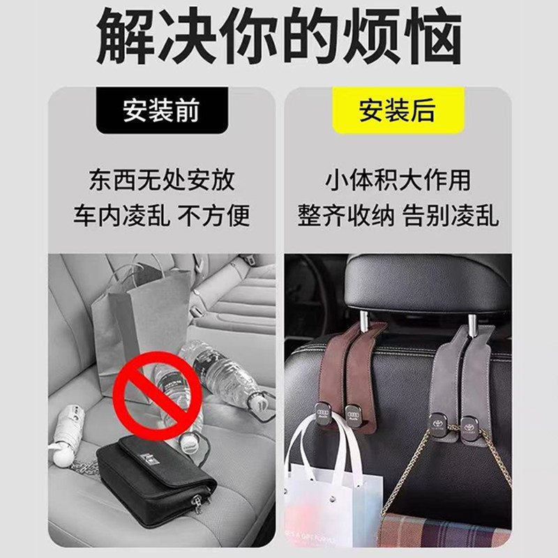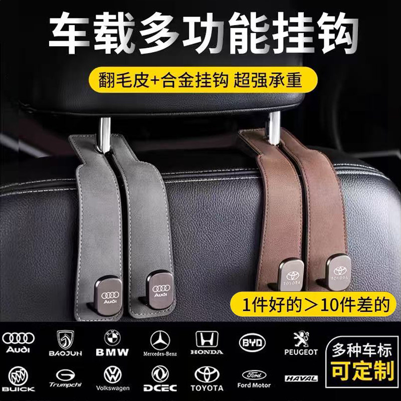 汽车车载挂钩车内挂钩翻毛皮挂钩专属车标折叠式耐磨隐藏式座椅背