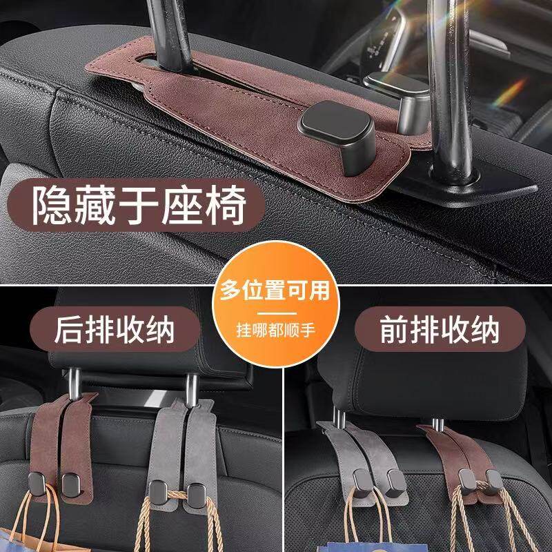 汽车挂钩车载座椅背升级隐藏双挂钩翻毛皮后排车内用包包储物挂钩