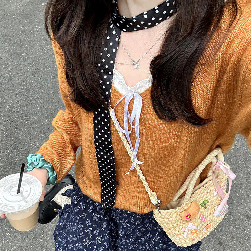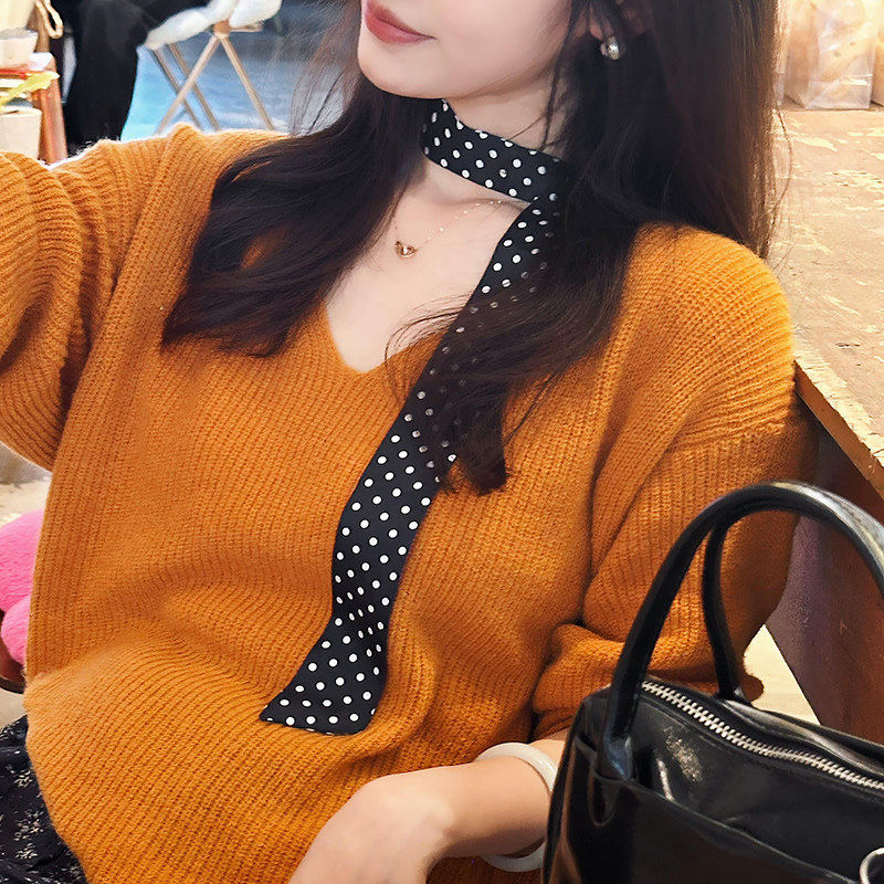 杨超越同款黑色长条波点丝巾系脖女日常外戴丝带高级感发带绑头绳
