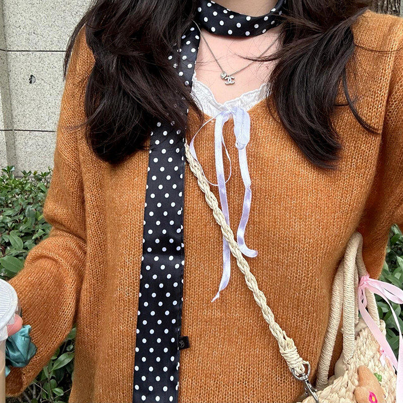 棕色波点丝巾印花高级百搭配饰系脖女2025年新款发带绑发长条围巾
