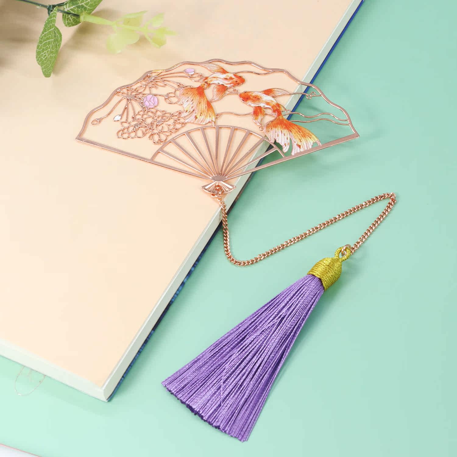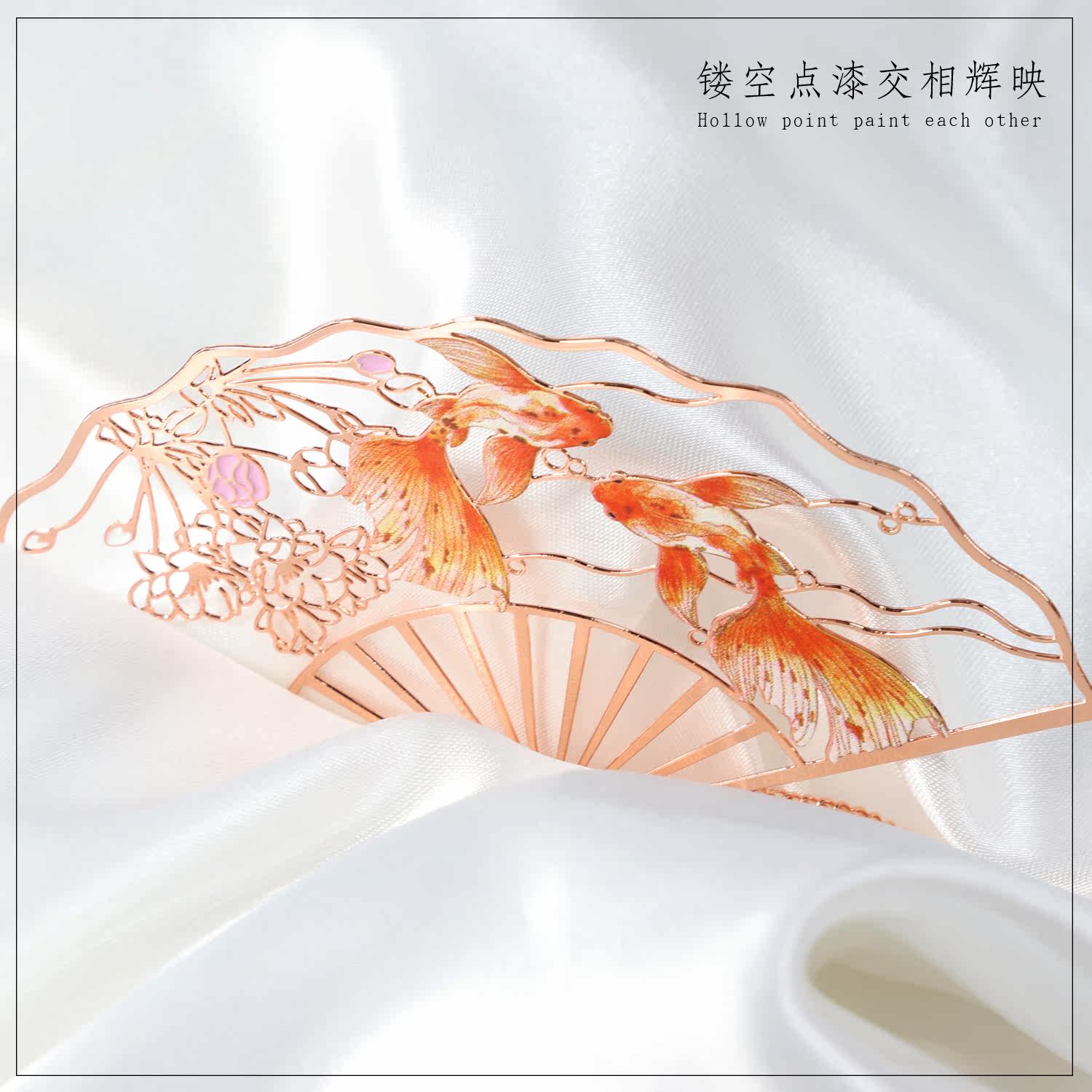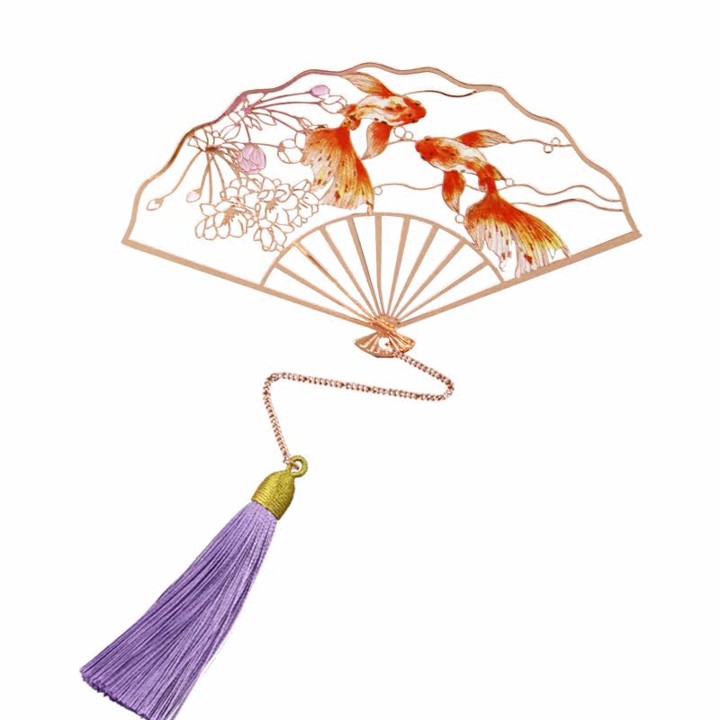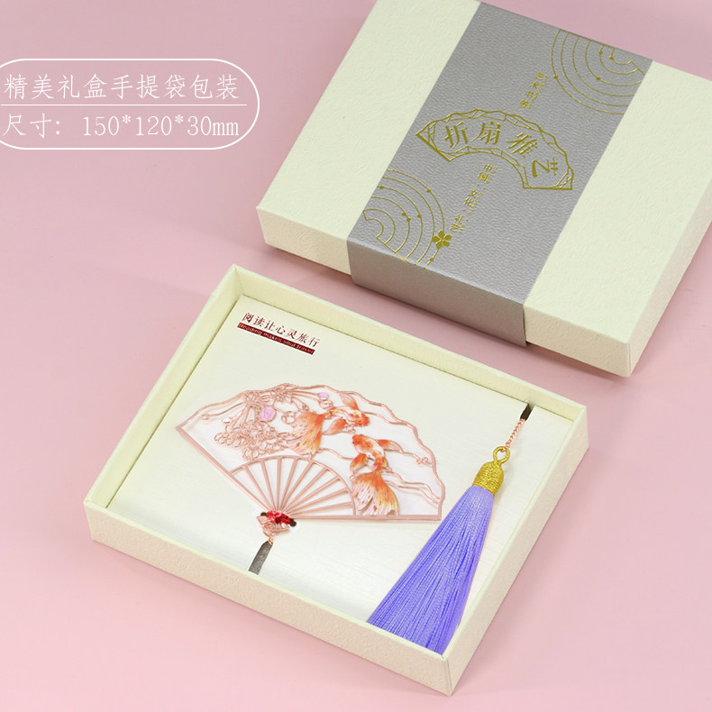 大鱼海棠玫瑰金金属折扇艺术书签 文艺创意礼品艺术花朵金鱼礼&手提袋送老师送朋友礼盒包装