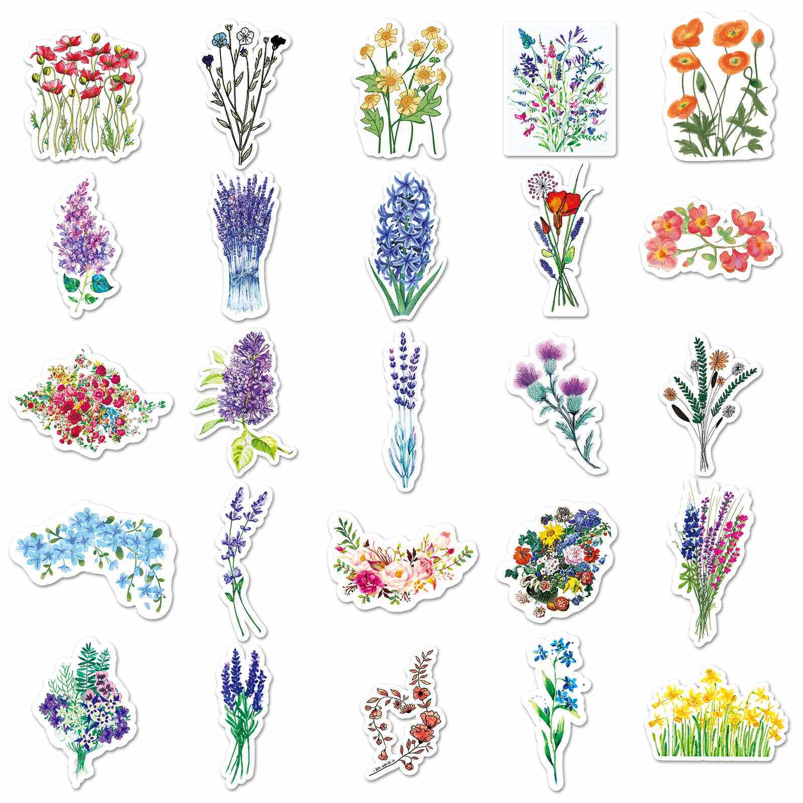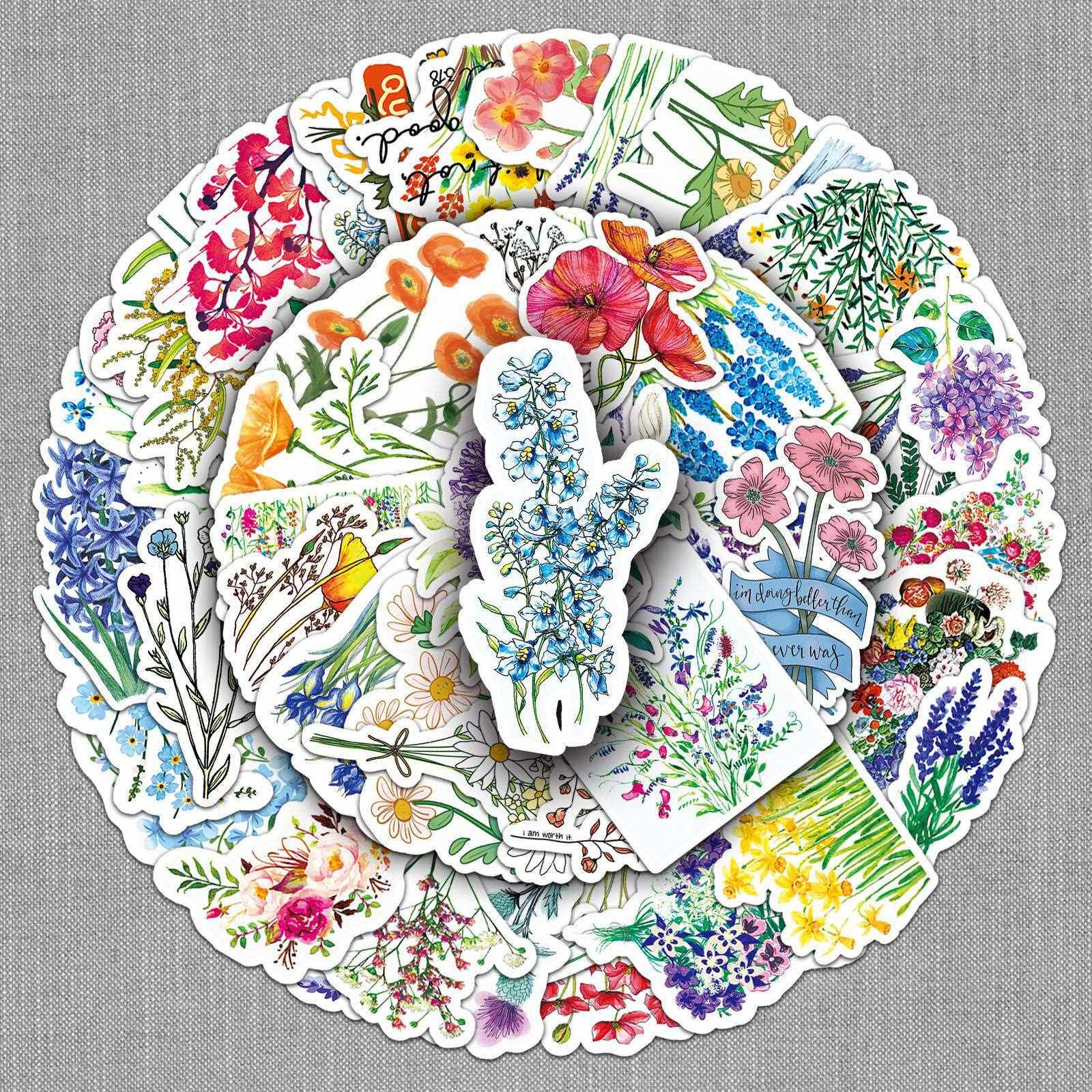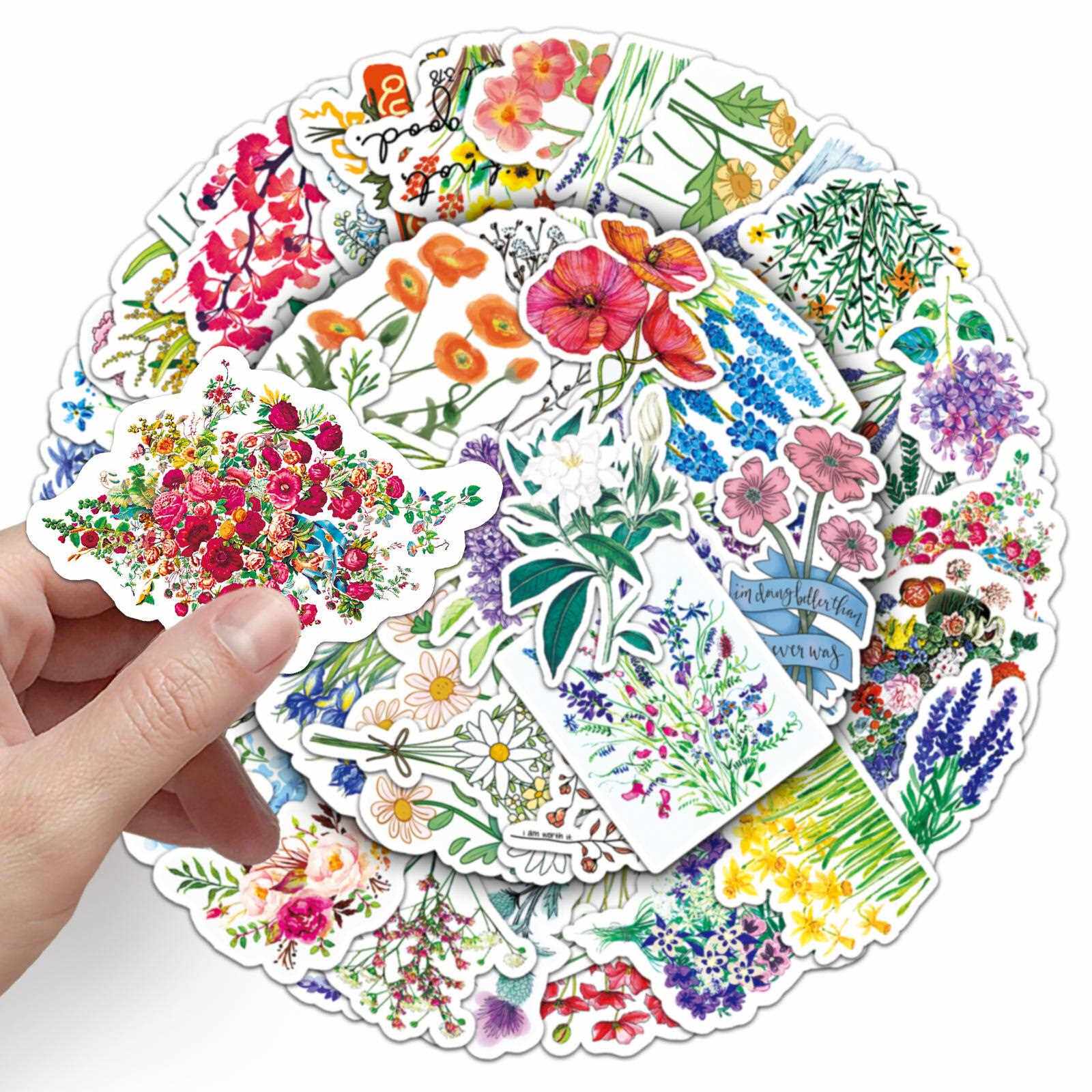 直销新款50张五彩花朵个性DIY笔记本涂鸦手账滑板车摩托车行李箱