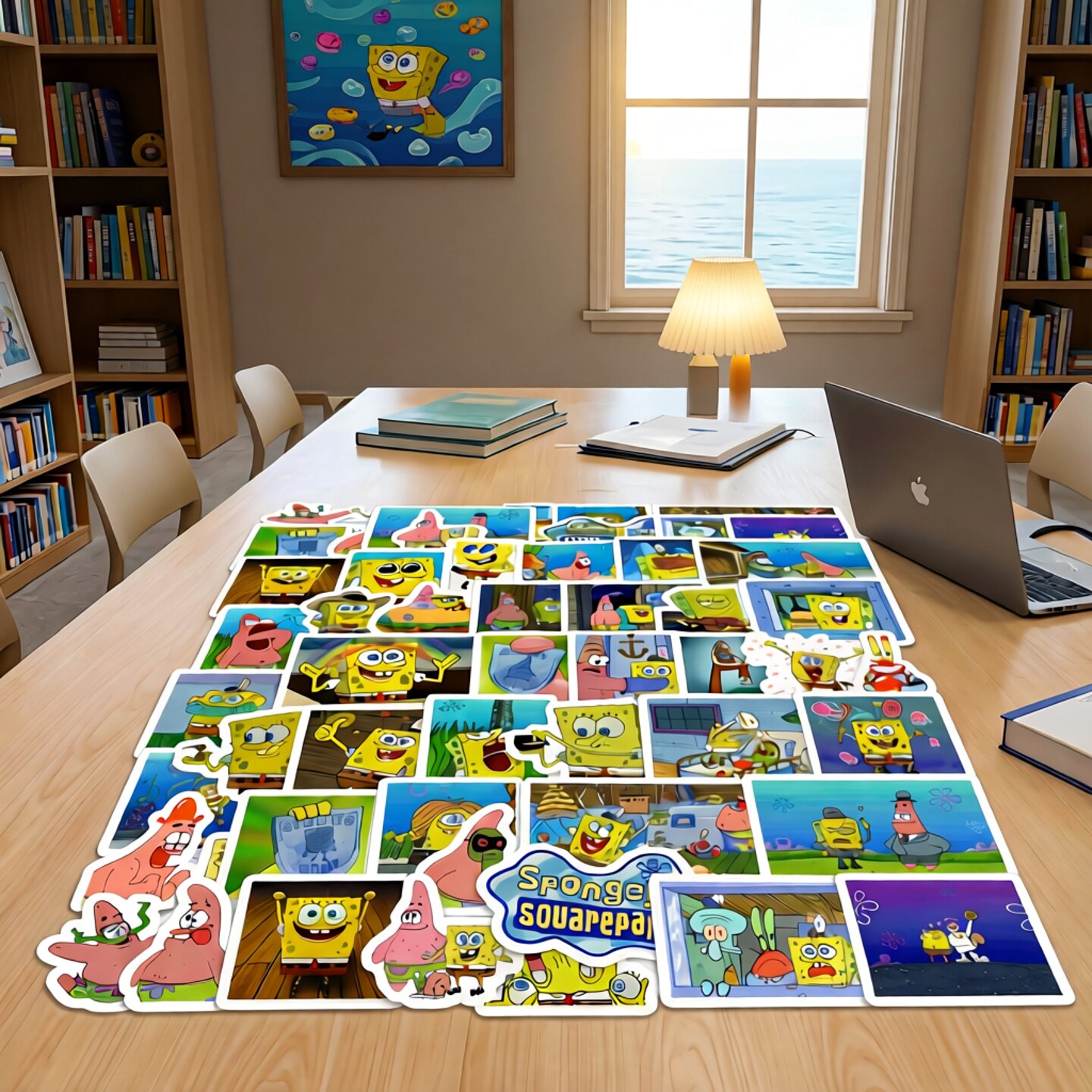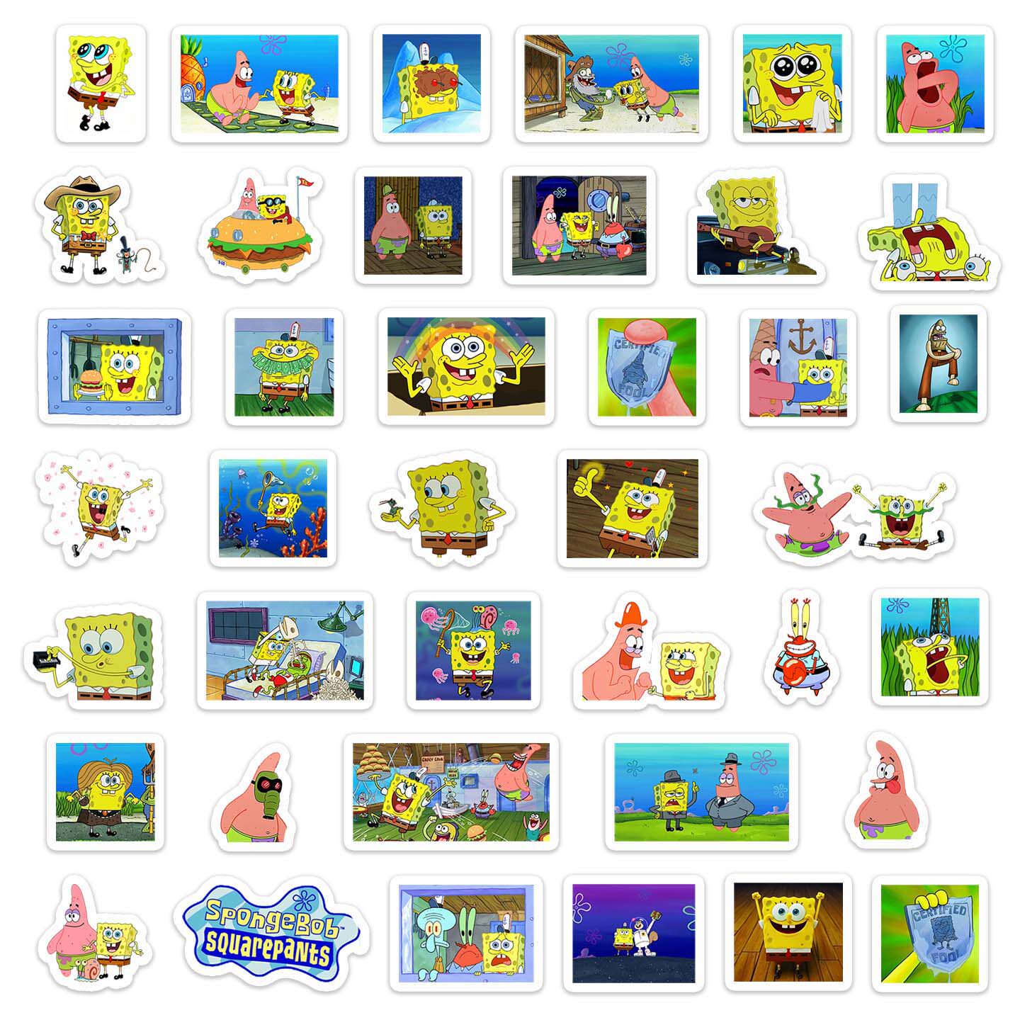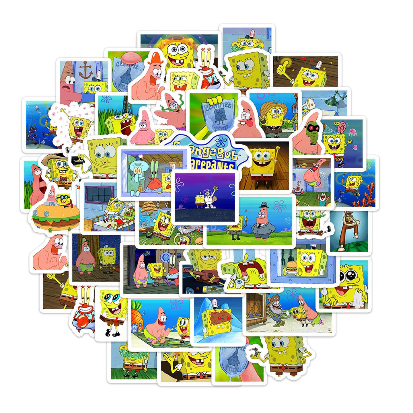 40张不重复海绵宝宝卡通动漫PVC防水小贴画可贴笔记本电脑手机壳文具滑板吉他文具行李箱电动车可作DIY素材