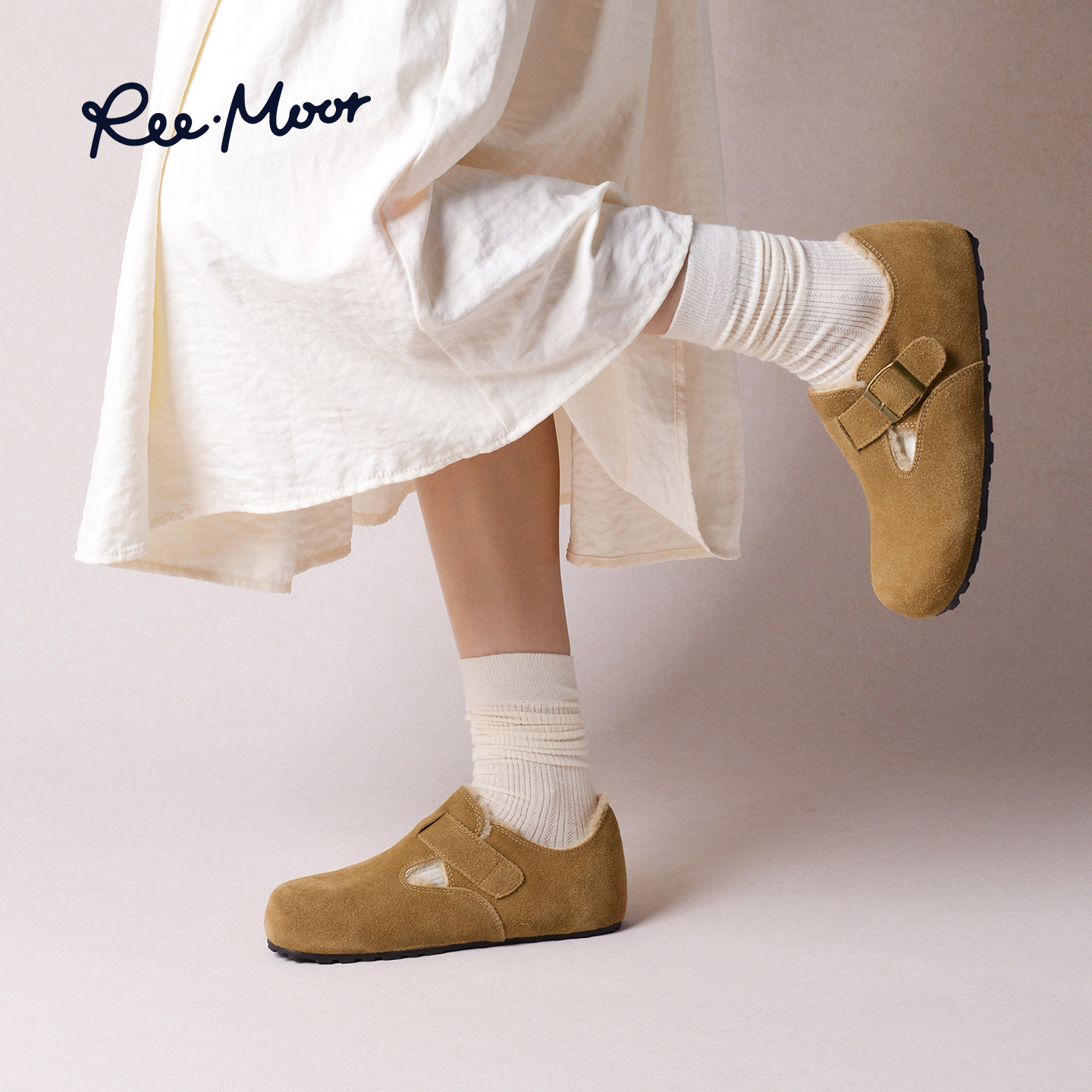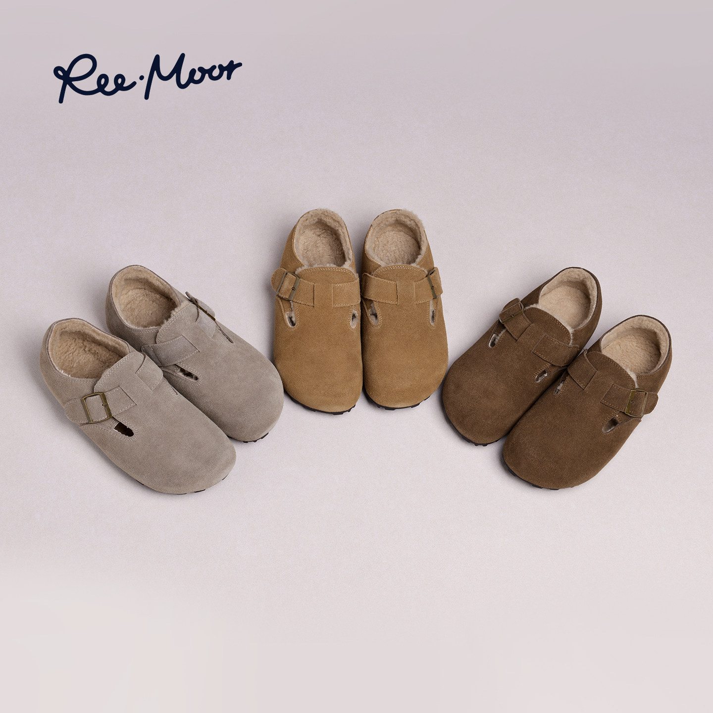 REEMOOR睿慕2025冬季新款全包勃肯鞋女加绒保暖魔术贴平底棉鞋
