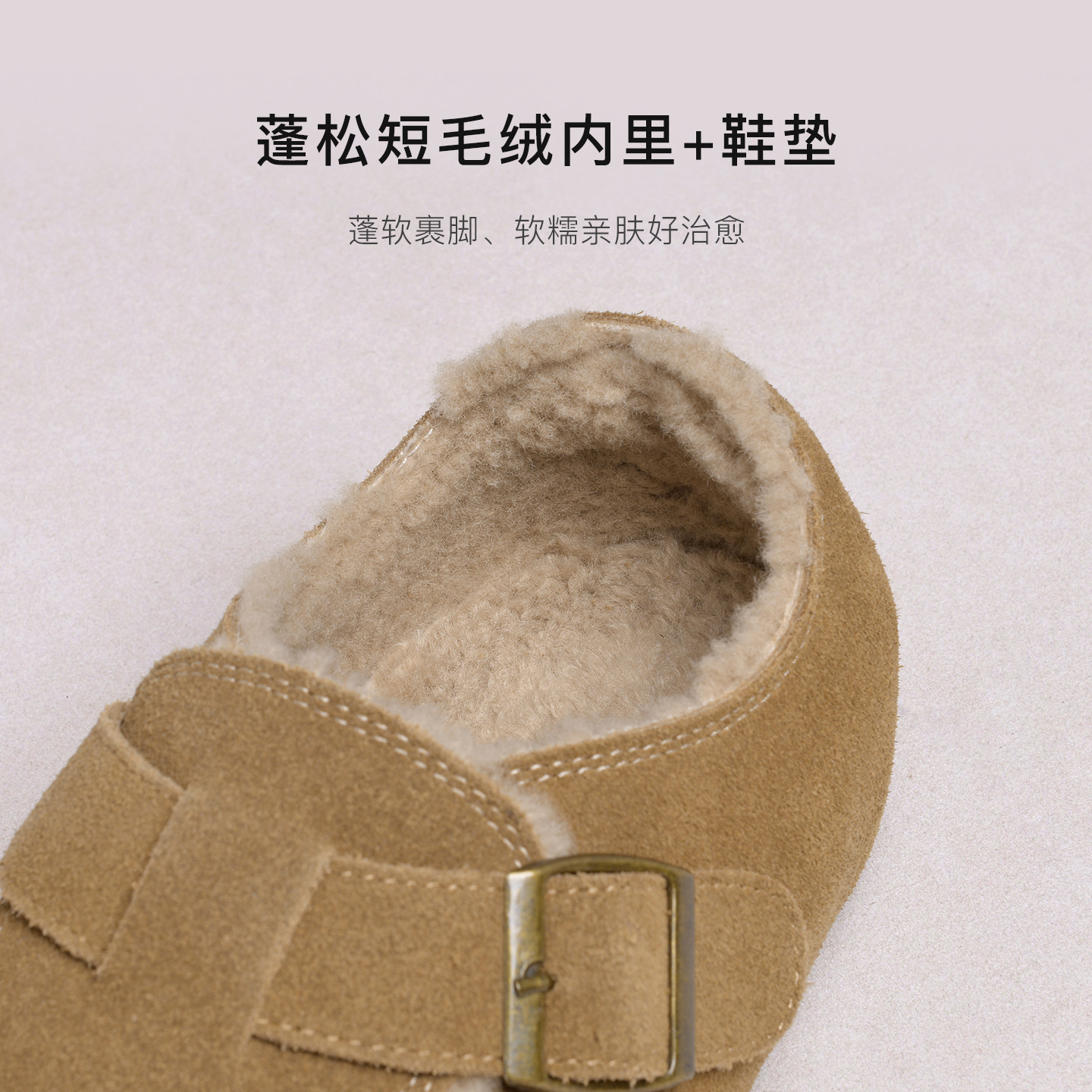 TATAFOCUS~加绒毛毛鞋韩版圆头皮带扣2025冬季新款勃肯鞋女35-28