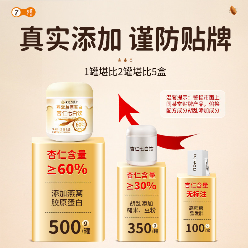 杏仁七白饮正品官方旗舰店燕窝胶原蛋白南杏仁粉早餐营养即食冲泡