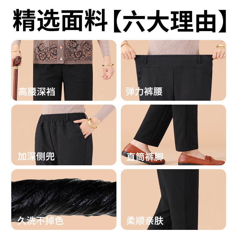 妈妈裤子春秋款松紧高腰弹力中老年女裤宽松大码直筒奶奶加绒长裤