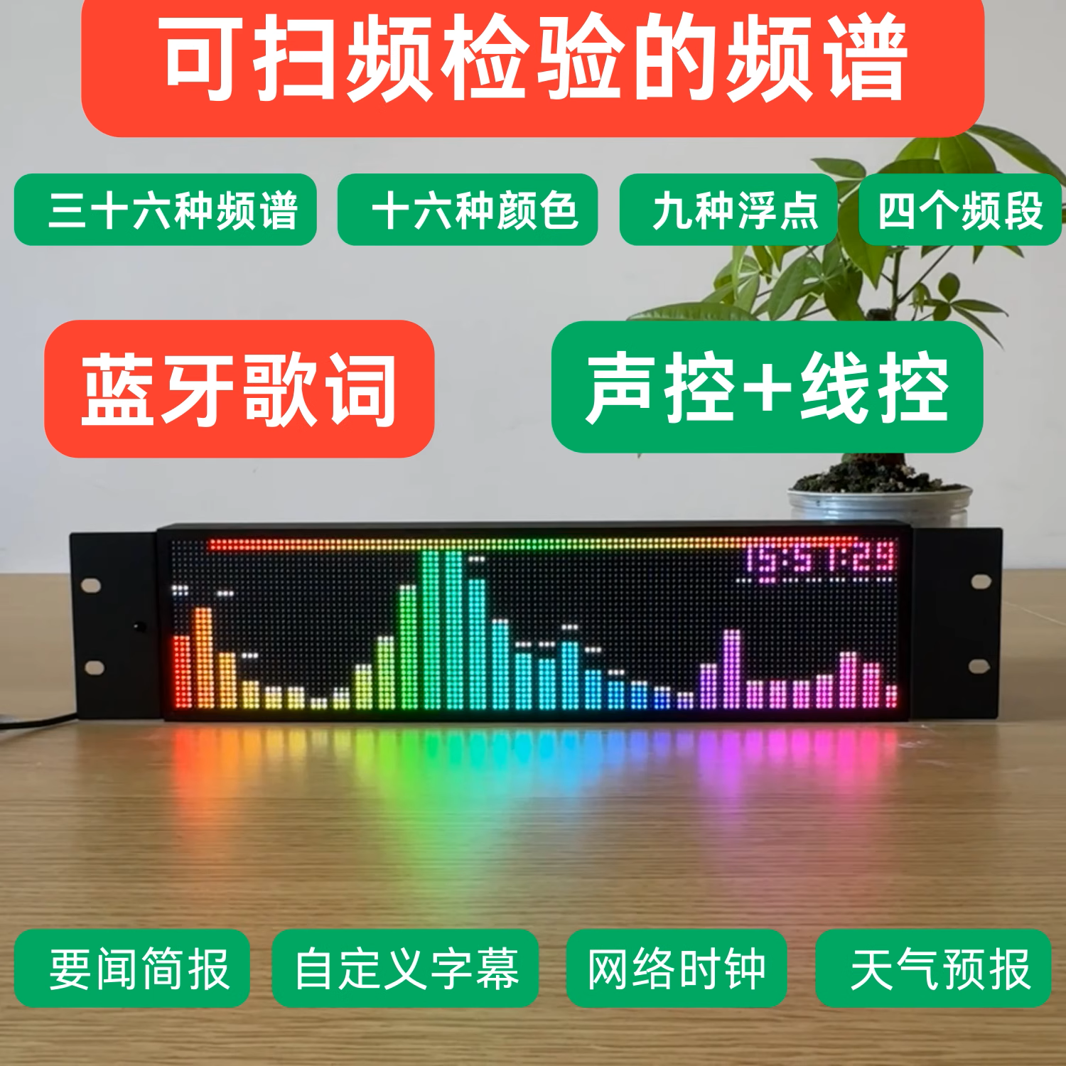 专业动态音乐节奏频谱显示器RGB全彩拾音灯桌面摆件音乐氛围灯