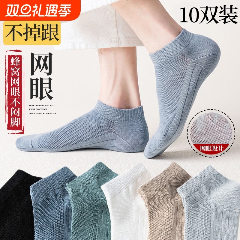 袜子男士短袜夏季薄款网眼纯棉透气ins潮防臭船袜春夏天防滑短筒
