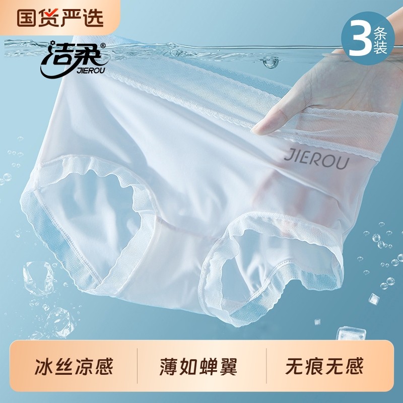 洁柔冰丝无痕内裤女士纯棉抗菌裆夏季薄款性感新款少女生三角短裤