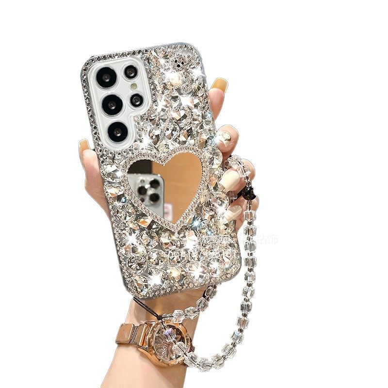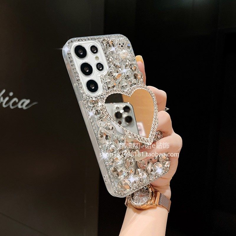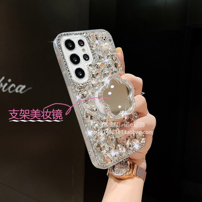 适用于三星S23手机壳S24支架三星GalaxyNote20美妆镜note10+奢华Ultra水钻全包防摔时尚镶钻新款创意S23+钻壳