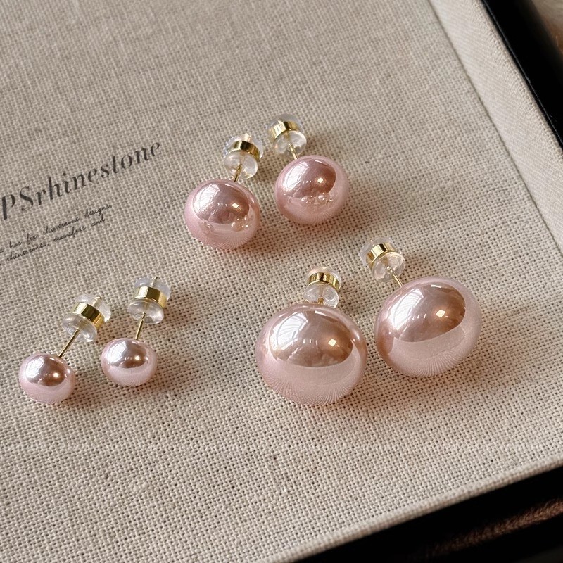 施家馒头粉耳饰光珍珠耳钉女轻奢小众气质耳环2024新款爆款高级感