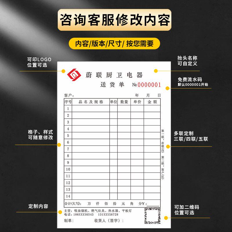 销货销售清单二联三联定粮油送货批发部经营部开单记账送货本